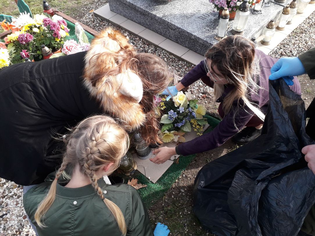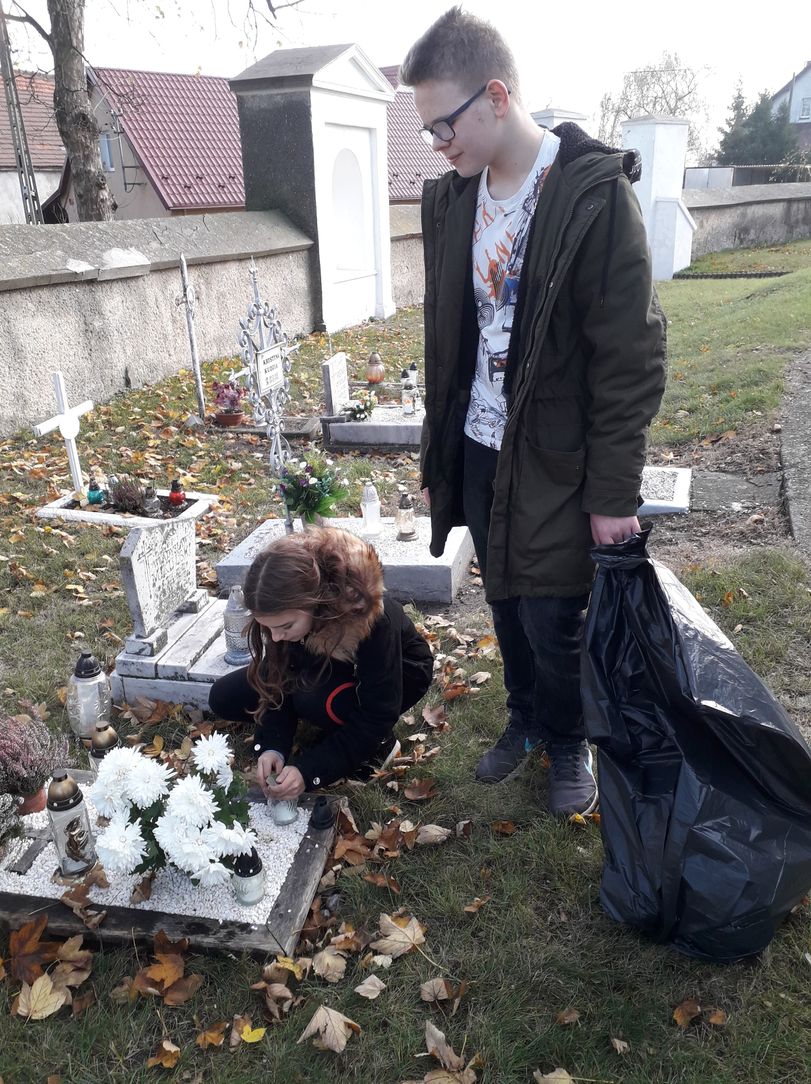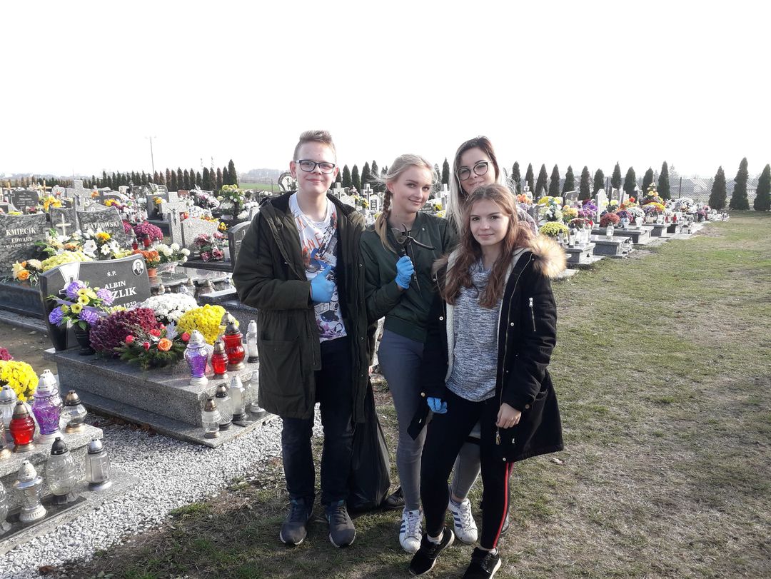 W poniedziałek (5. 11.2018), po długim weekendzie, grupa wolontariuszy Zespołu Szkół wyruszyła na Skoroszycki cmentarz. Uczniowie postanowili uporządkować te groby, których z różnych przyczyn nie odwiedzili podczas świąt bliscy zmarłych. Ciężka praca, była okazją do rozmów o tradycjach lokalnych oraz kultywowaniu pamięci przodków i osób zmarłych. W wyprawie brali udział uczniowie klas 3 gimnazjum pod opieką Pedagoga Szkolnego Piotra Osiadły.