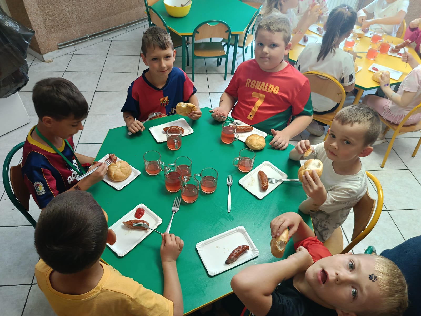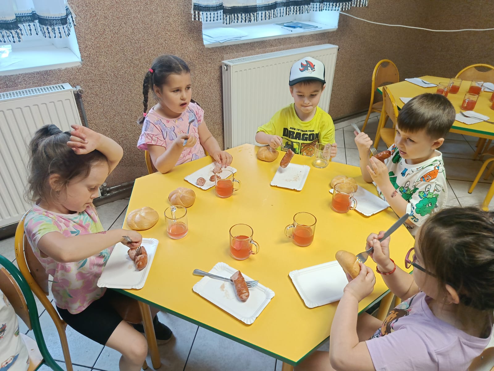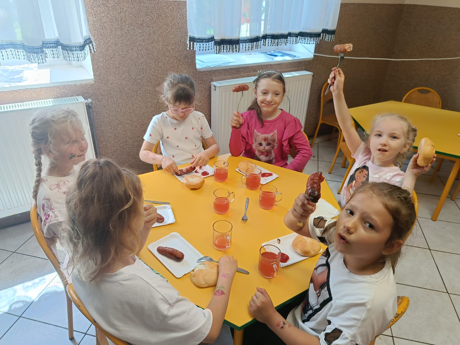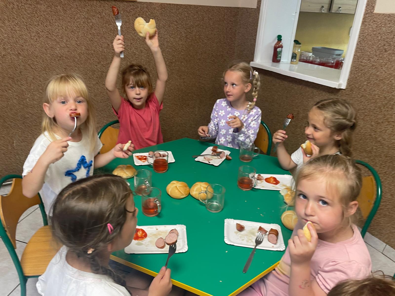 Dzieci w tym dniu mogły cieszyć się pysznymi kiełbaskami oraz orzeźwiającymi lodami .