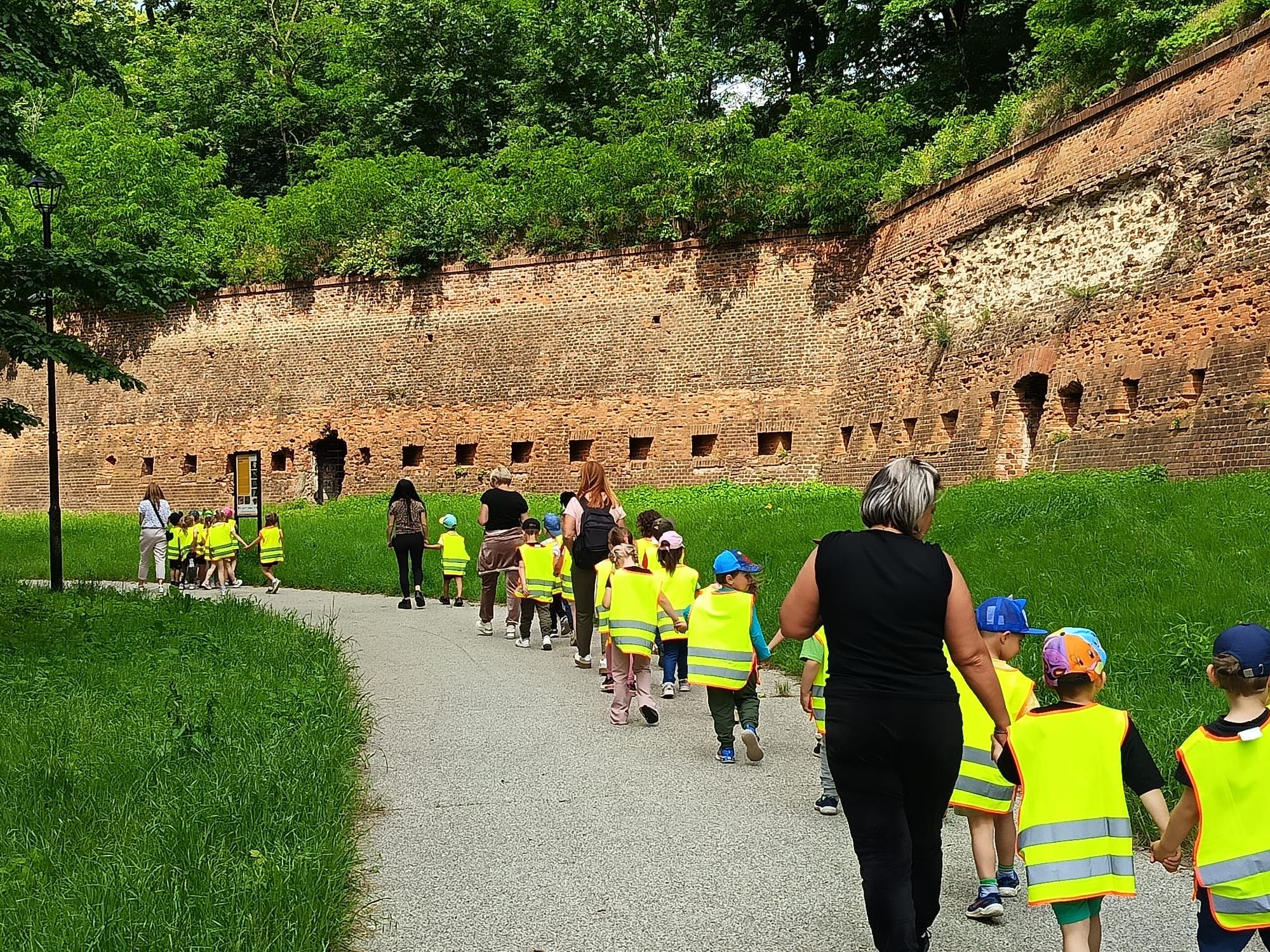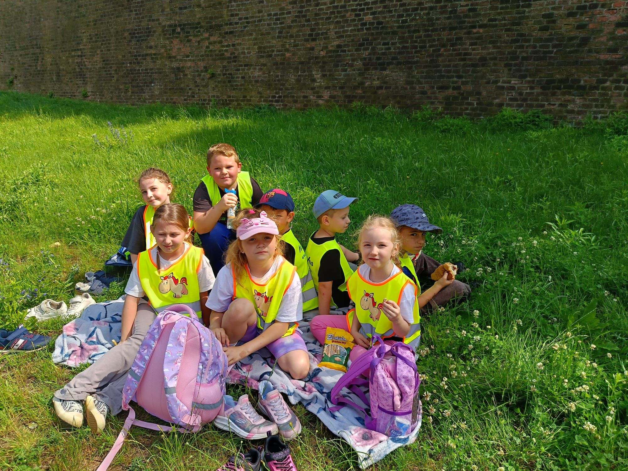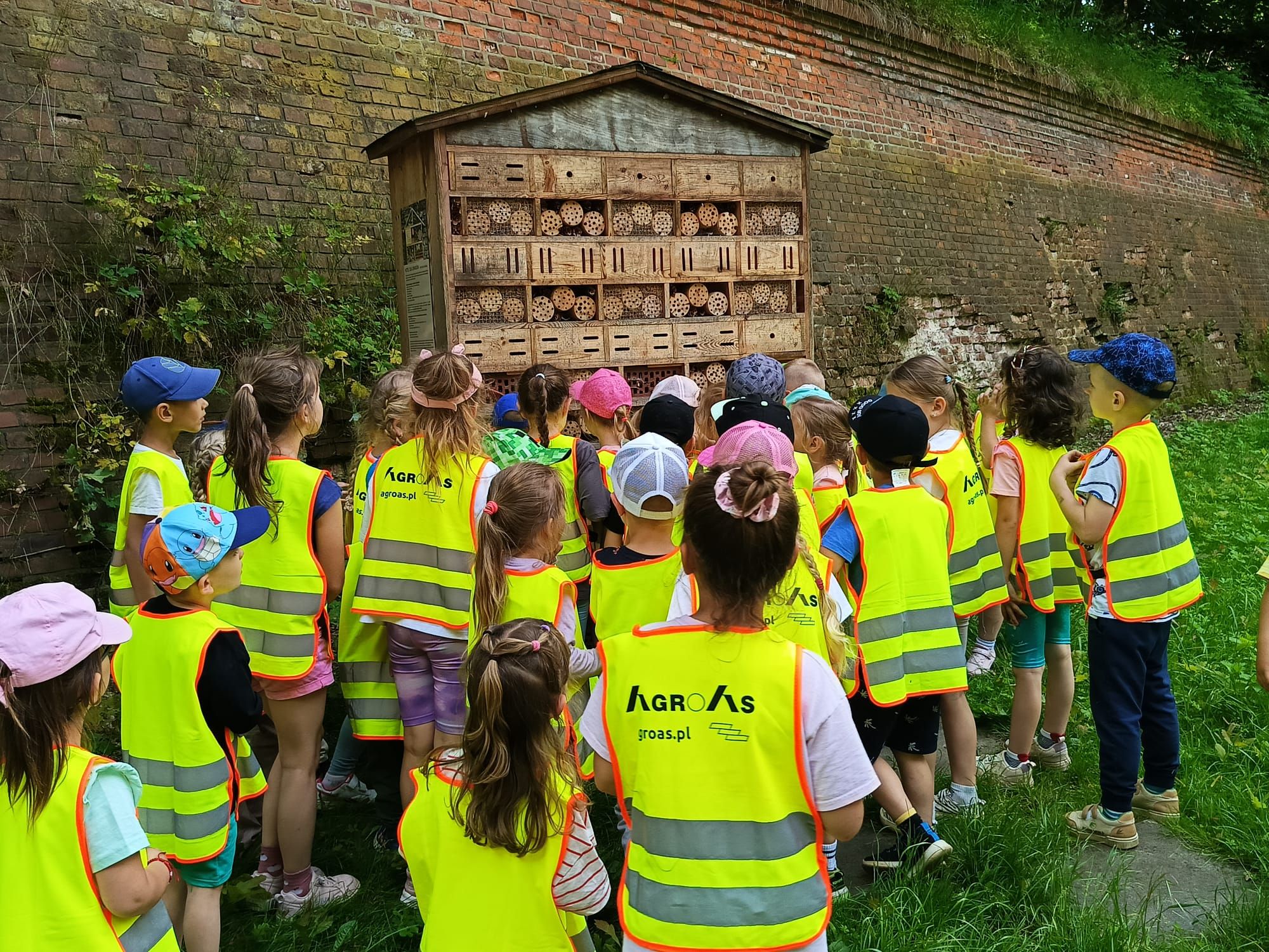 Nie zabrakło też spaceru na Nyskich Fortach – mali odkrywcy obserwowali przyrodę i podziwiali m.in. „hotel dla zwierząt” .