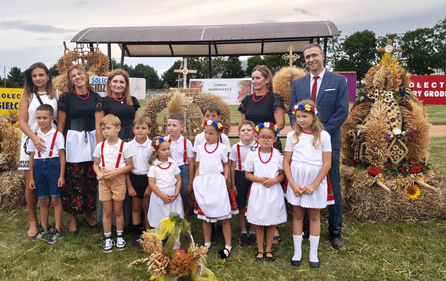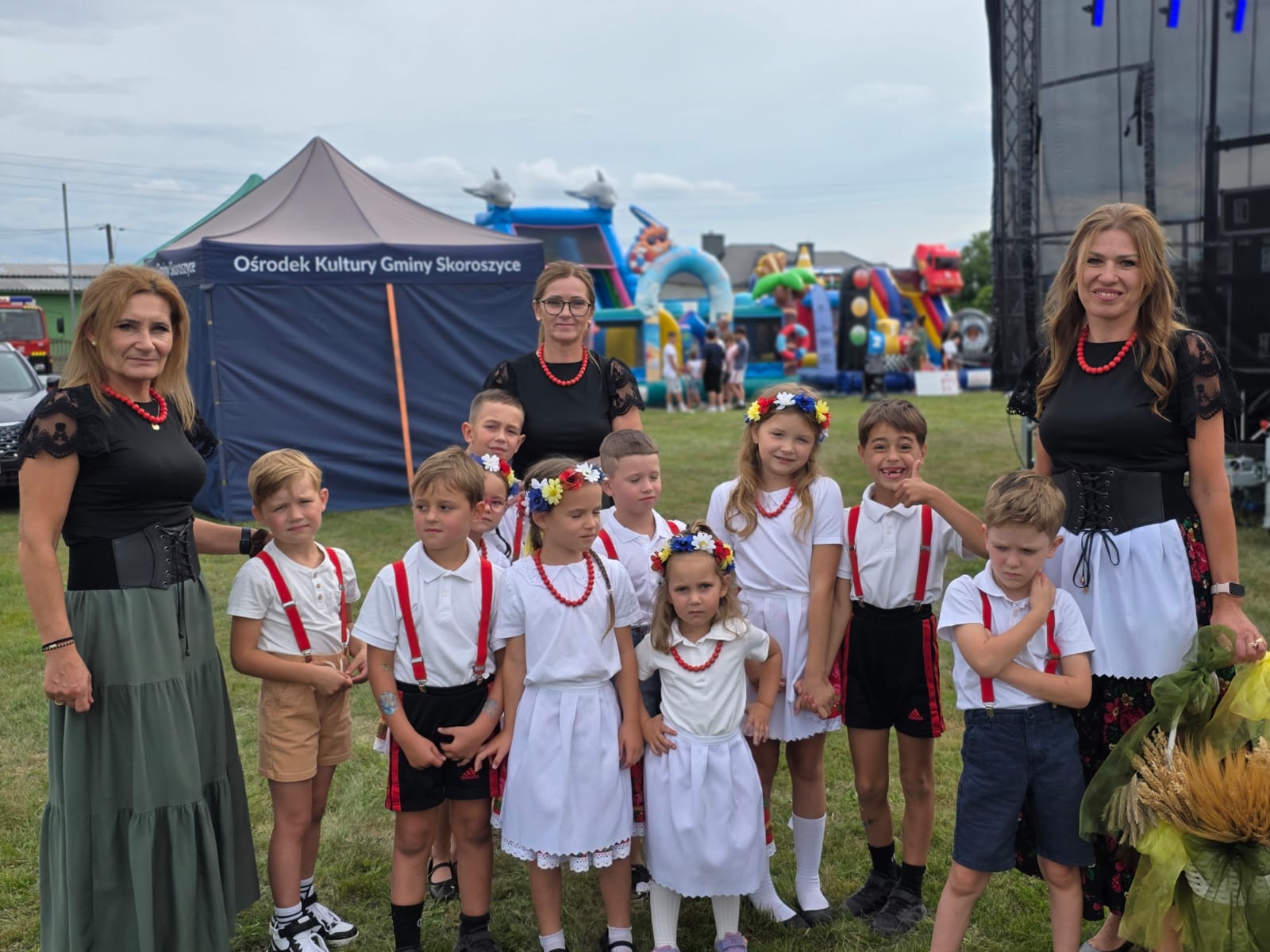 Przedszkolaki z Przedszkola w Skoroszycach wzięły udział w uroczystości Dożynek Gminnych w Skoroszycach, prezentując występ artystyczny