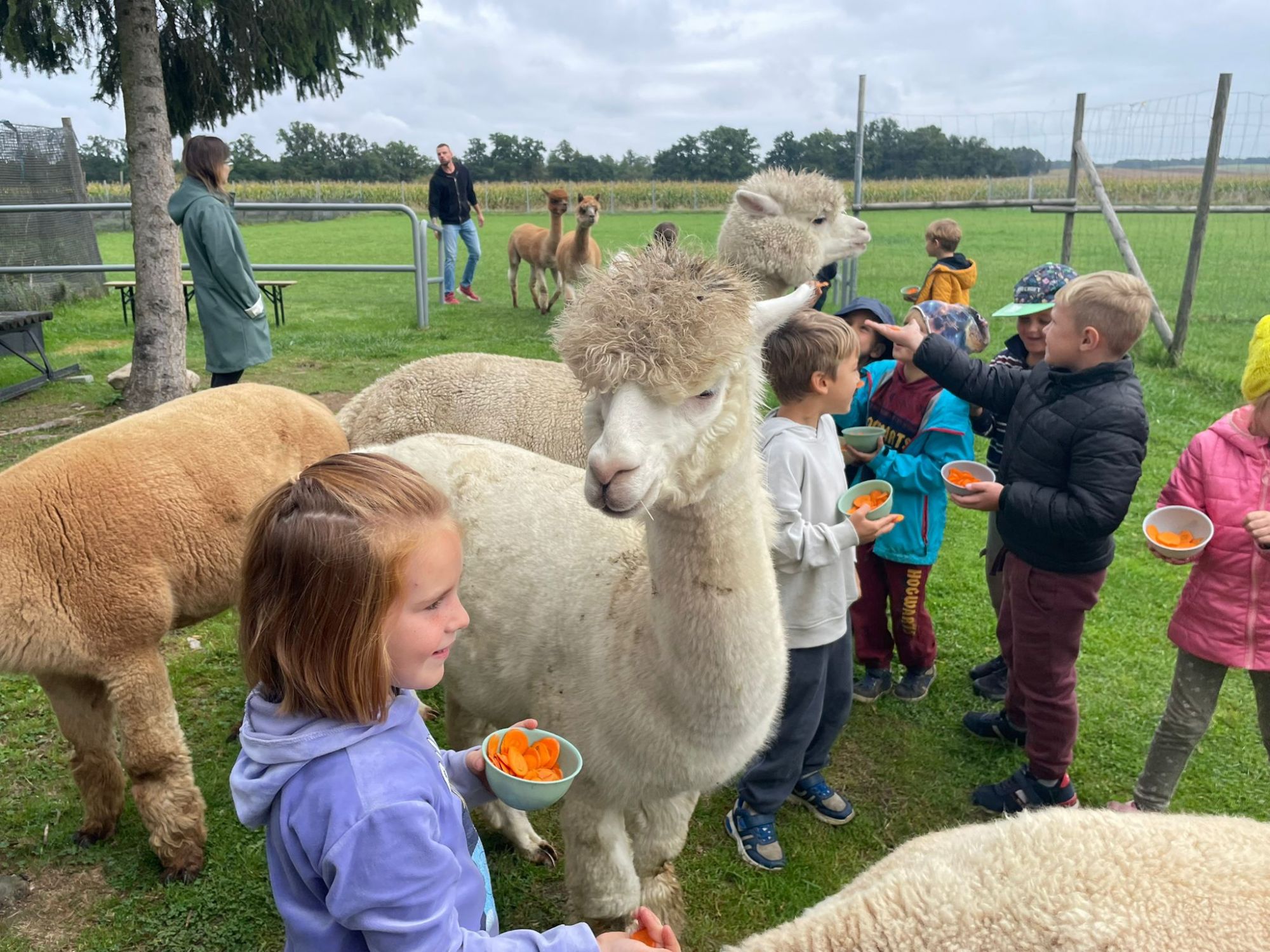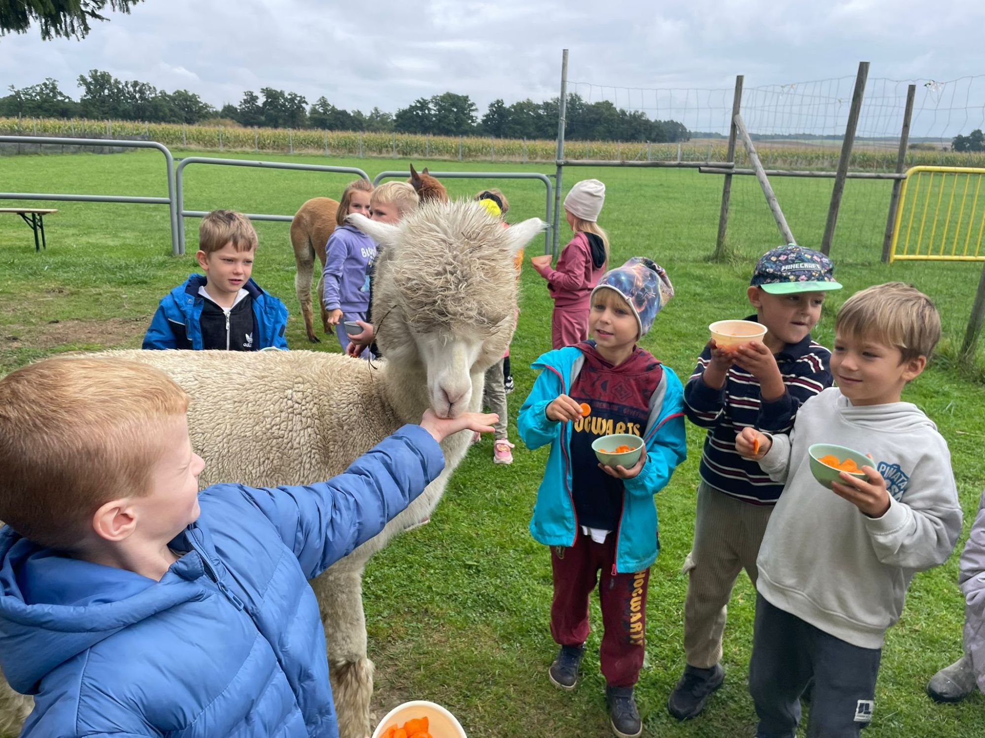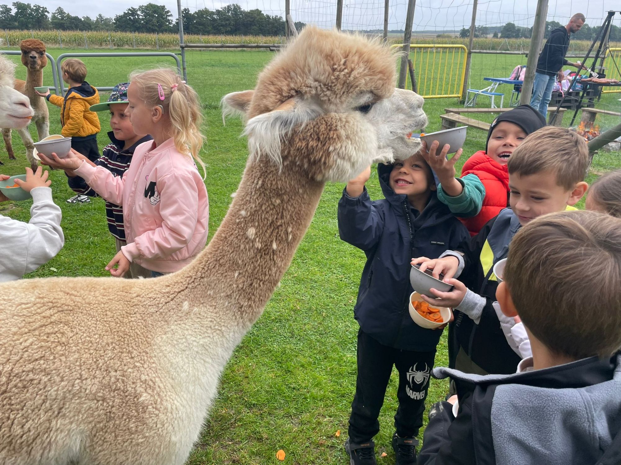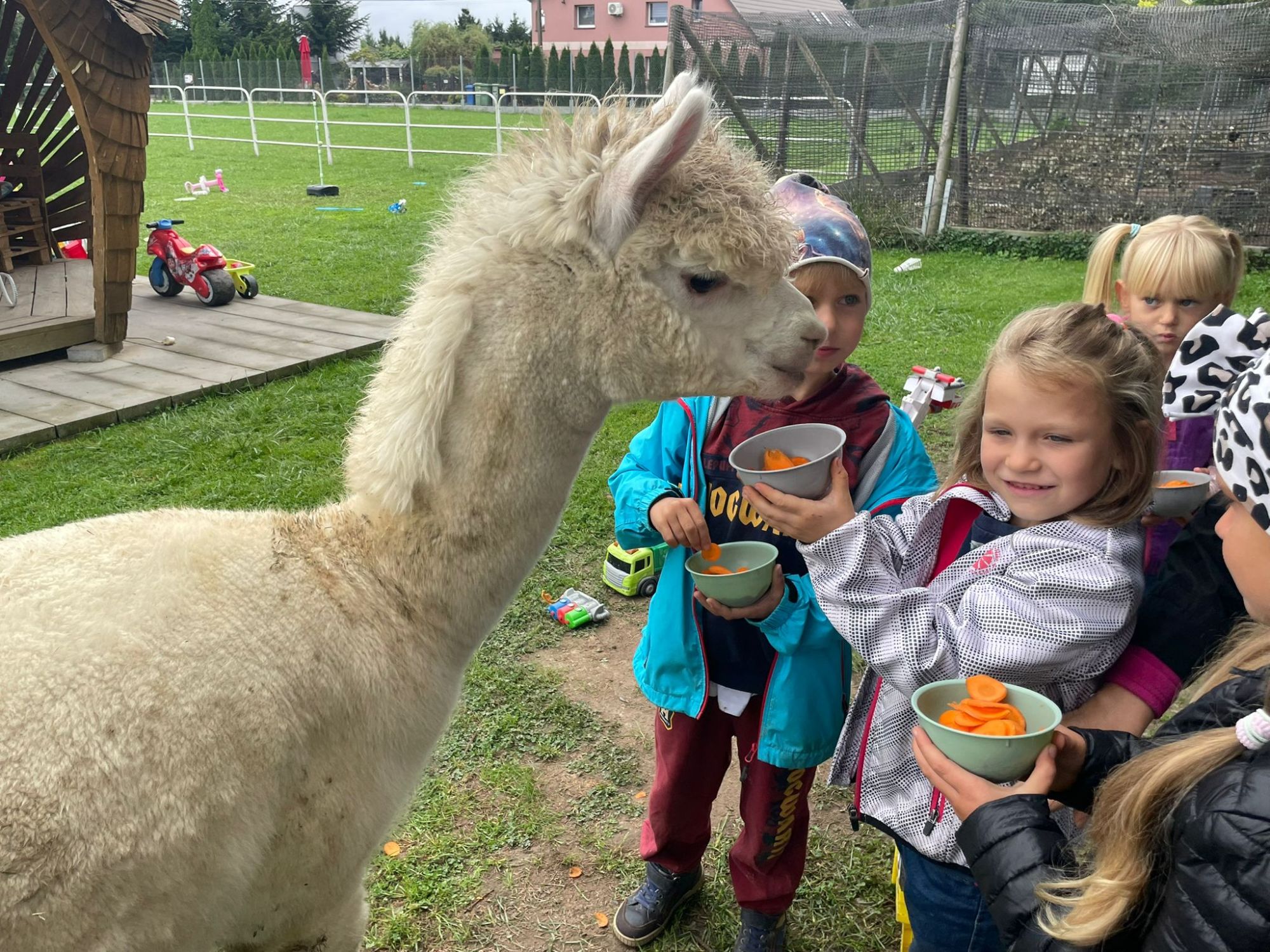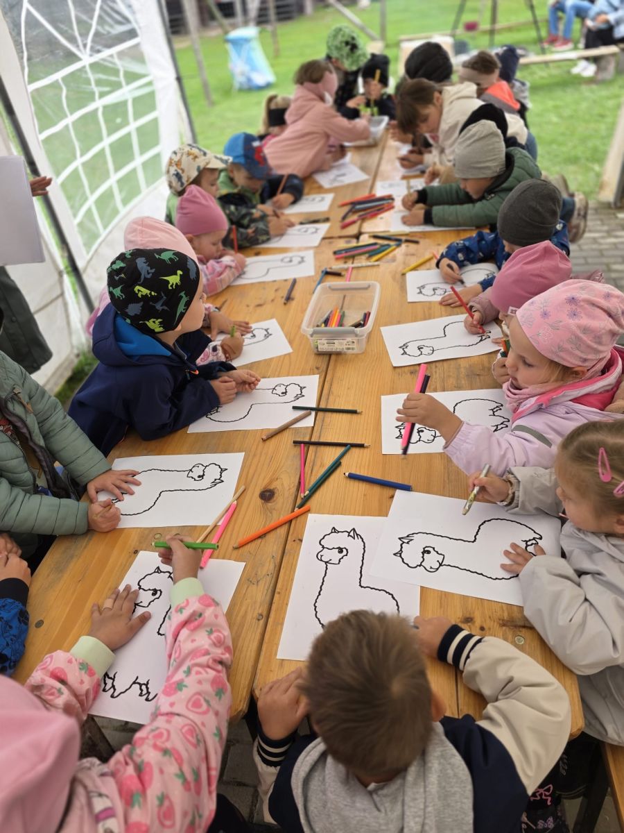 odczas wizyty miały okazję uczestniczyć w zajęciach edukacyjnych o alpakach, mogly karmić je, głaskać i spędzać z nimi czas.