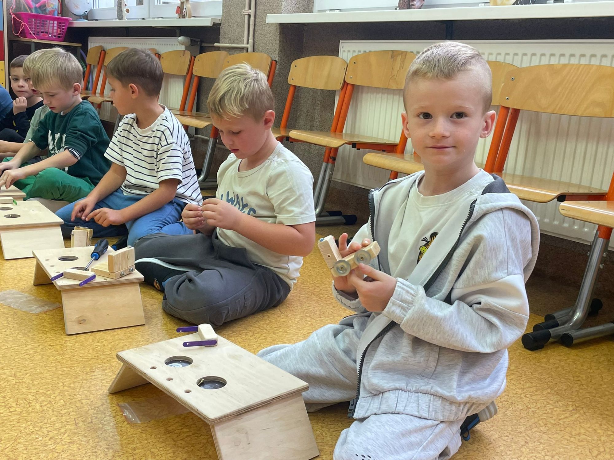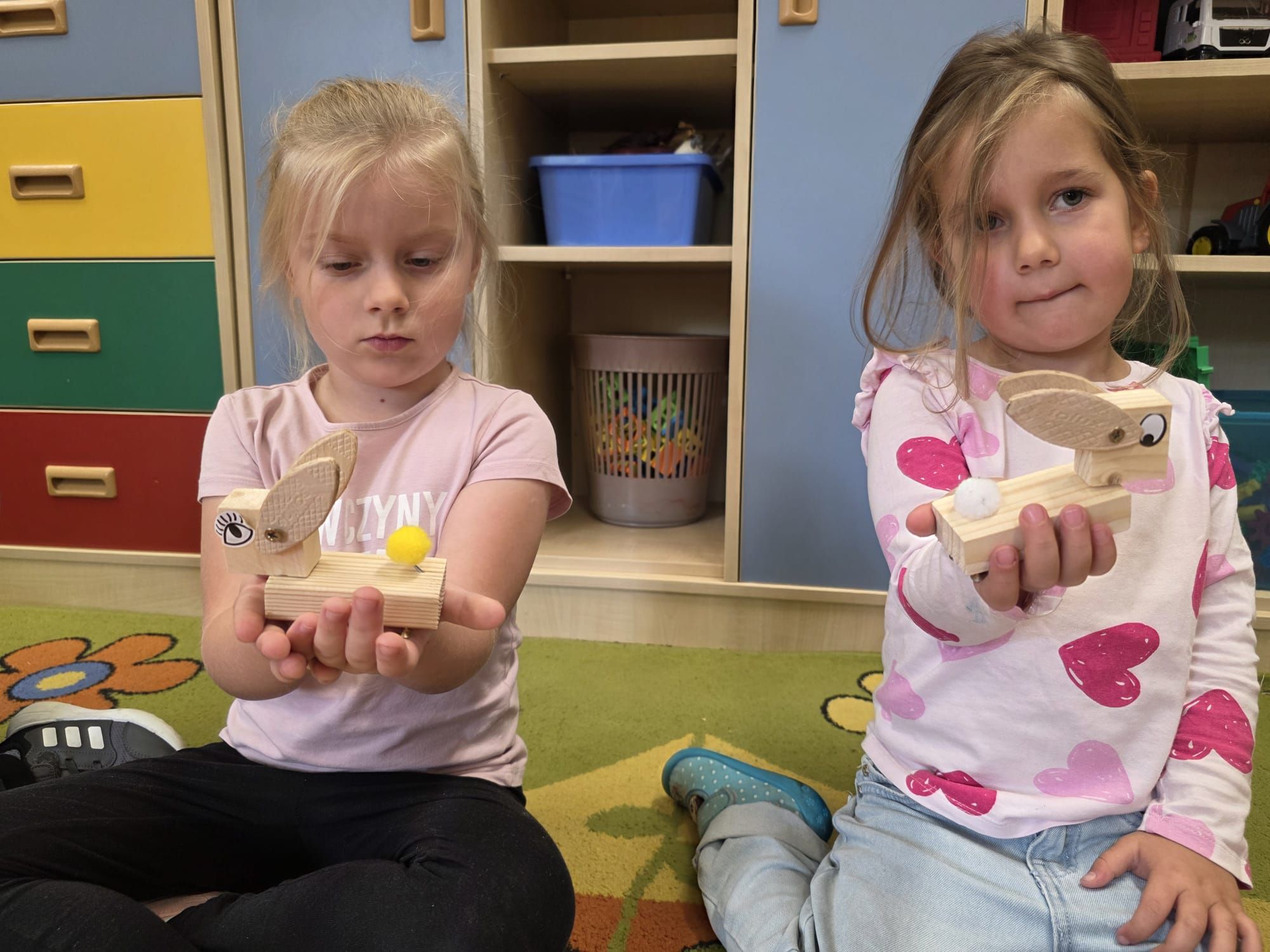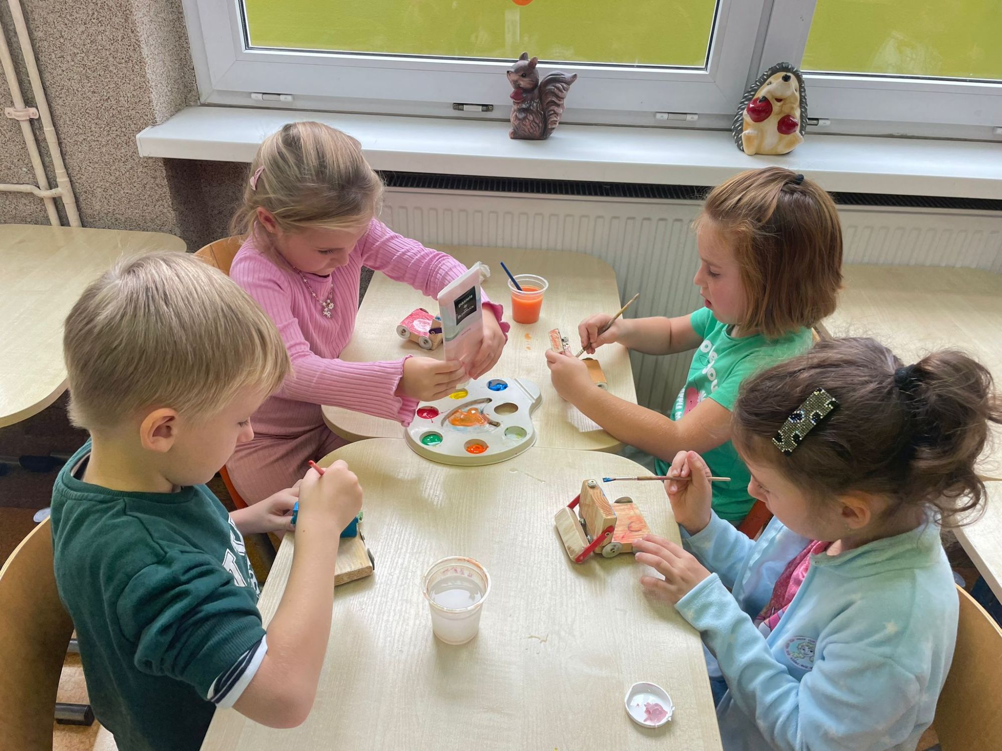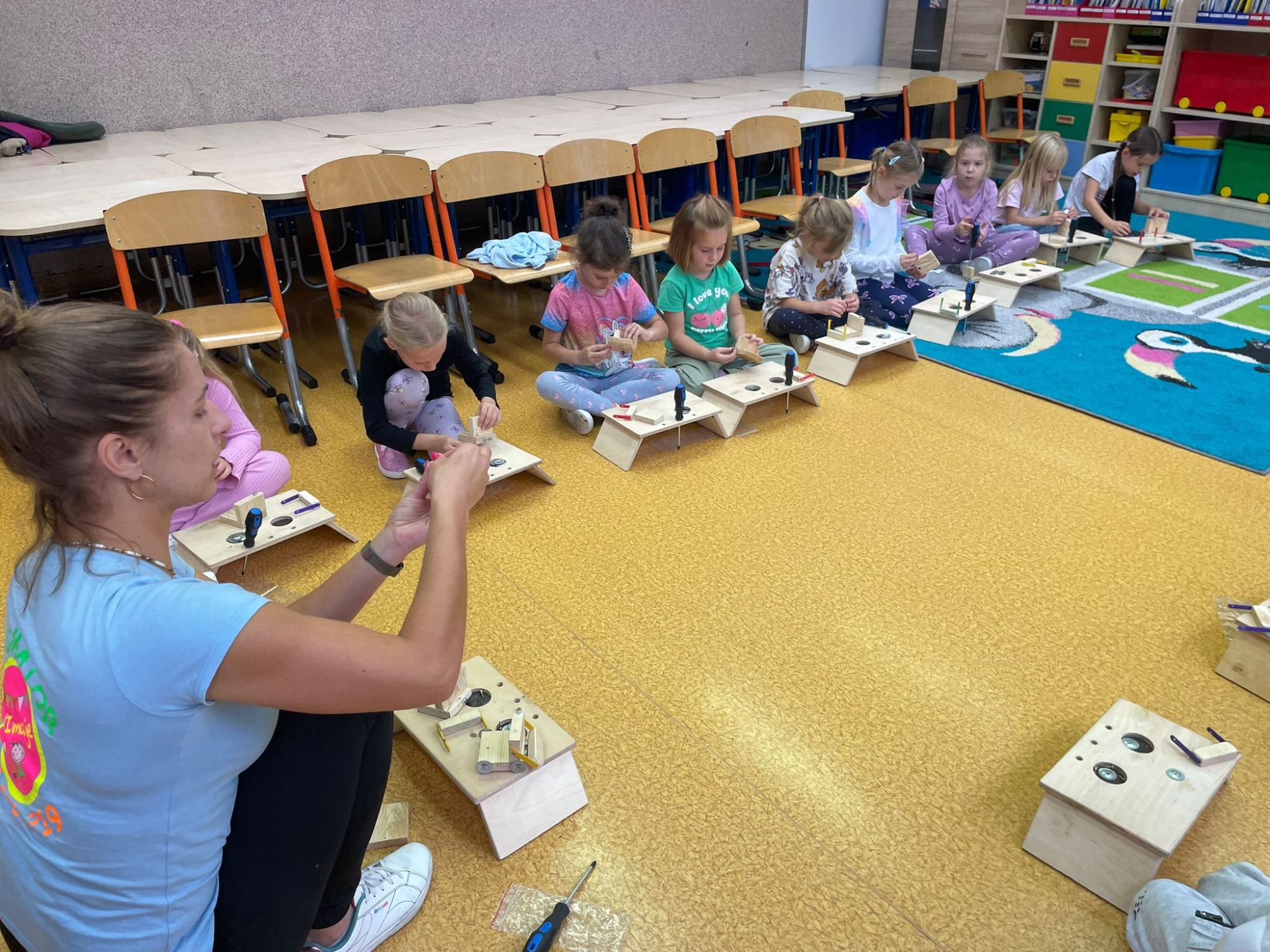 Podczas warsztatów majsterkowicza dzieci miały okazję stworzyć własne drewniane samochodziki, zajączki oraz pady do gier