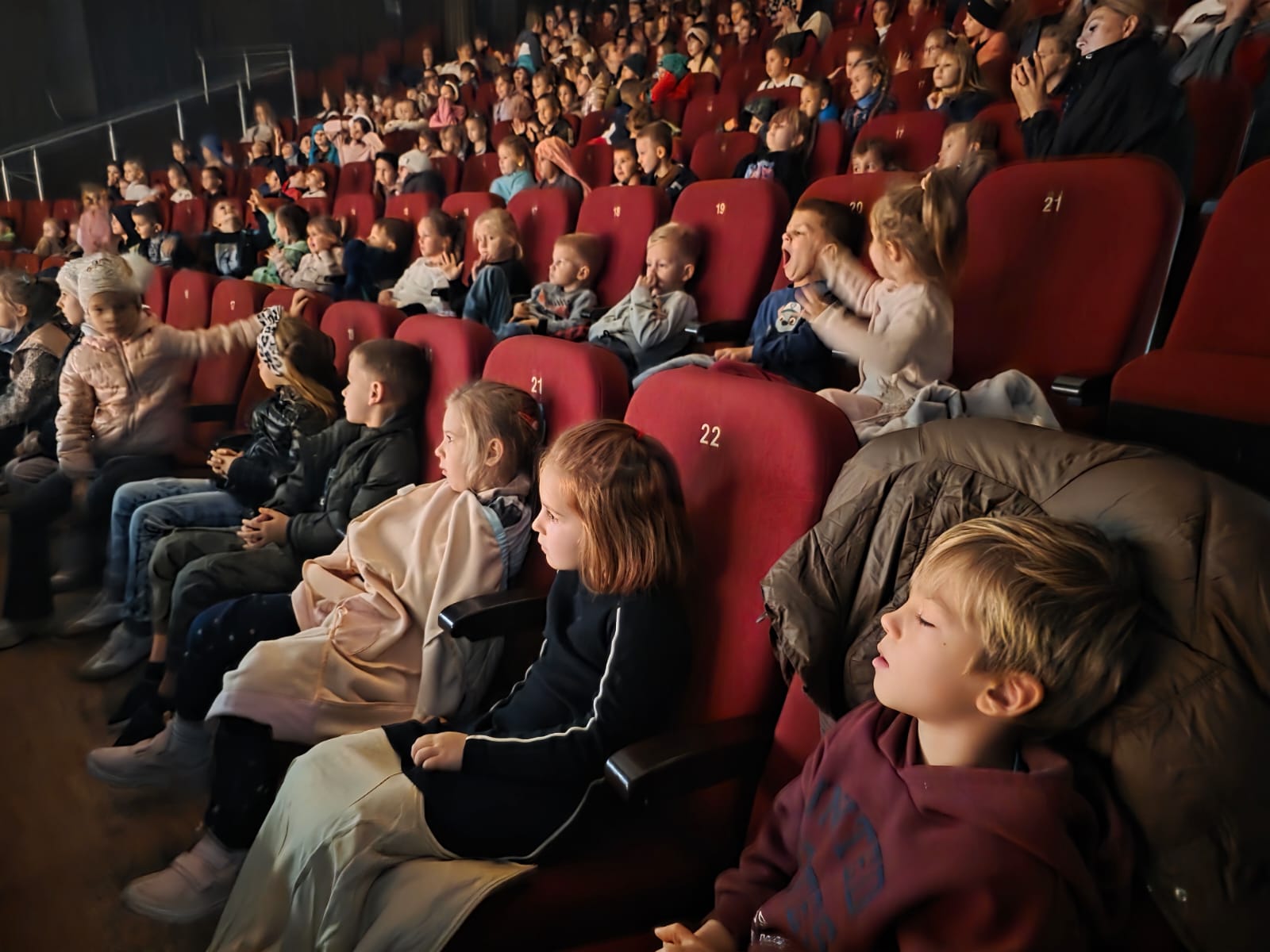 Dzieci z zachwytem oglądały piękne stroje aktorów, grę świateł oraz