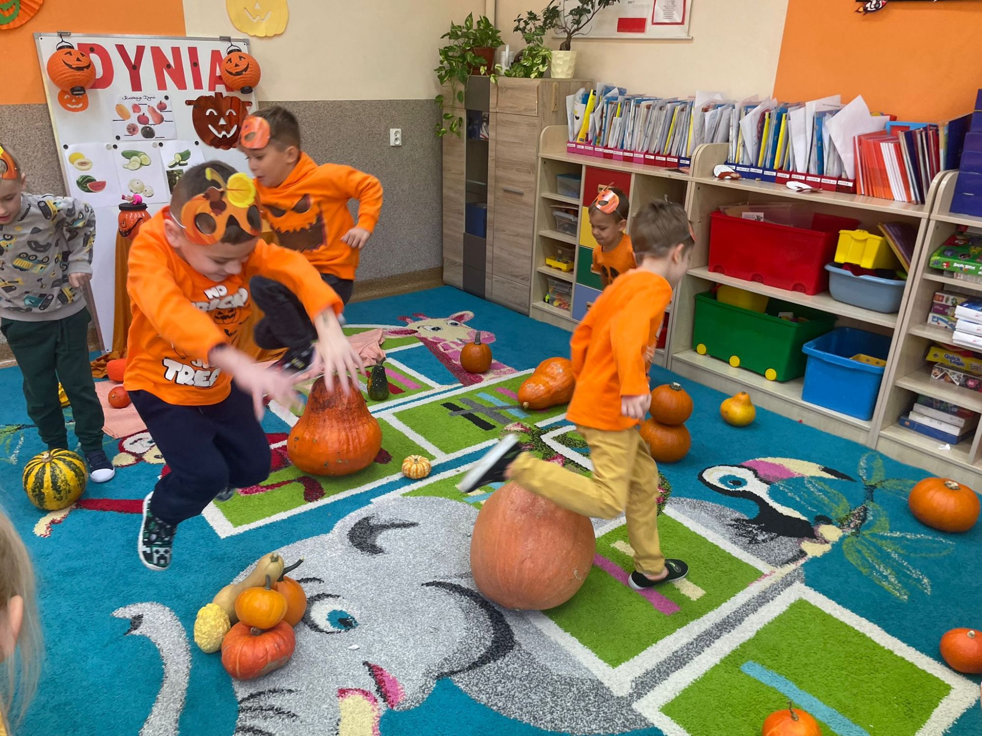 Nie zabrakło także dyniowych zabaw ruchowych, ciekawostek oraz rozmów o wartościach odżywczych i zdrowotnych dyni. Wydarzenie było wspaniałą okazją, by zachęcić dzieci do zdrowego odżywiania i odkrywania smaku jesieni!