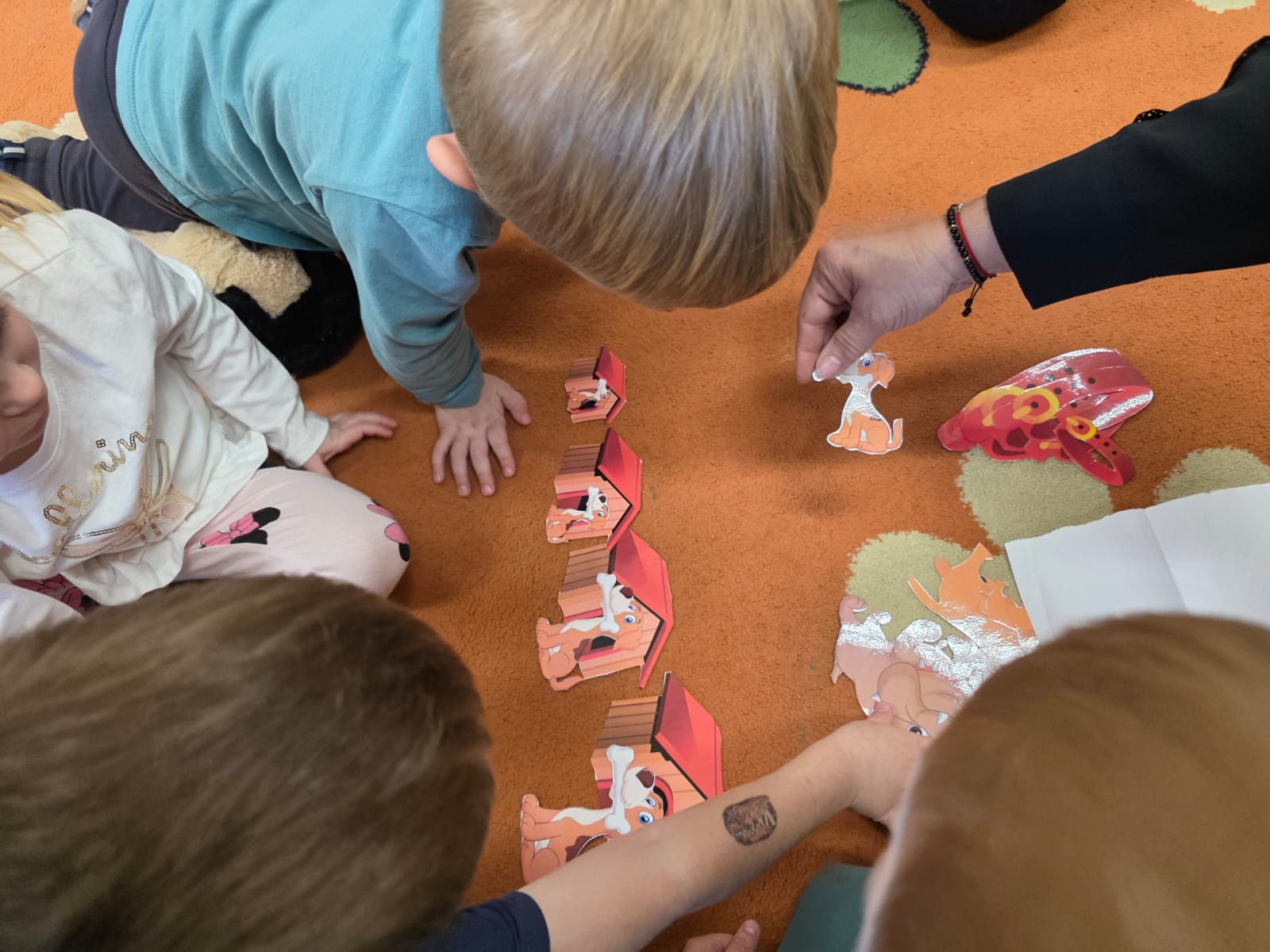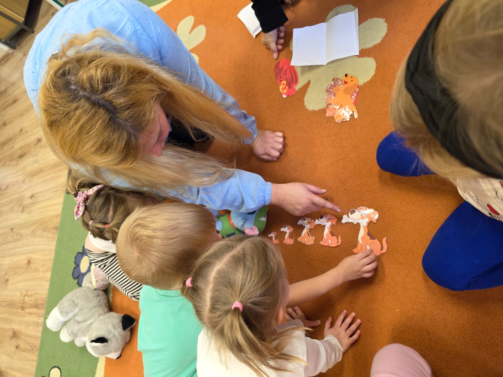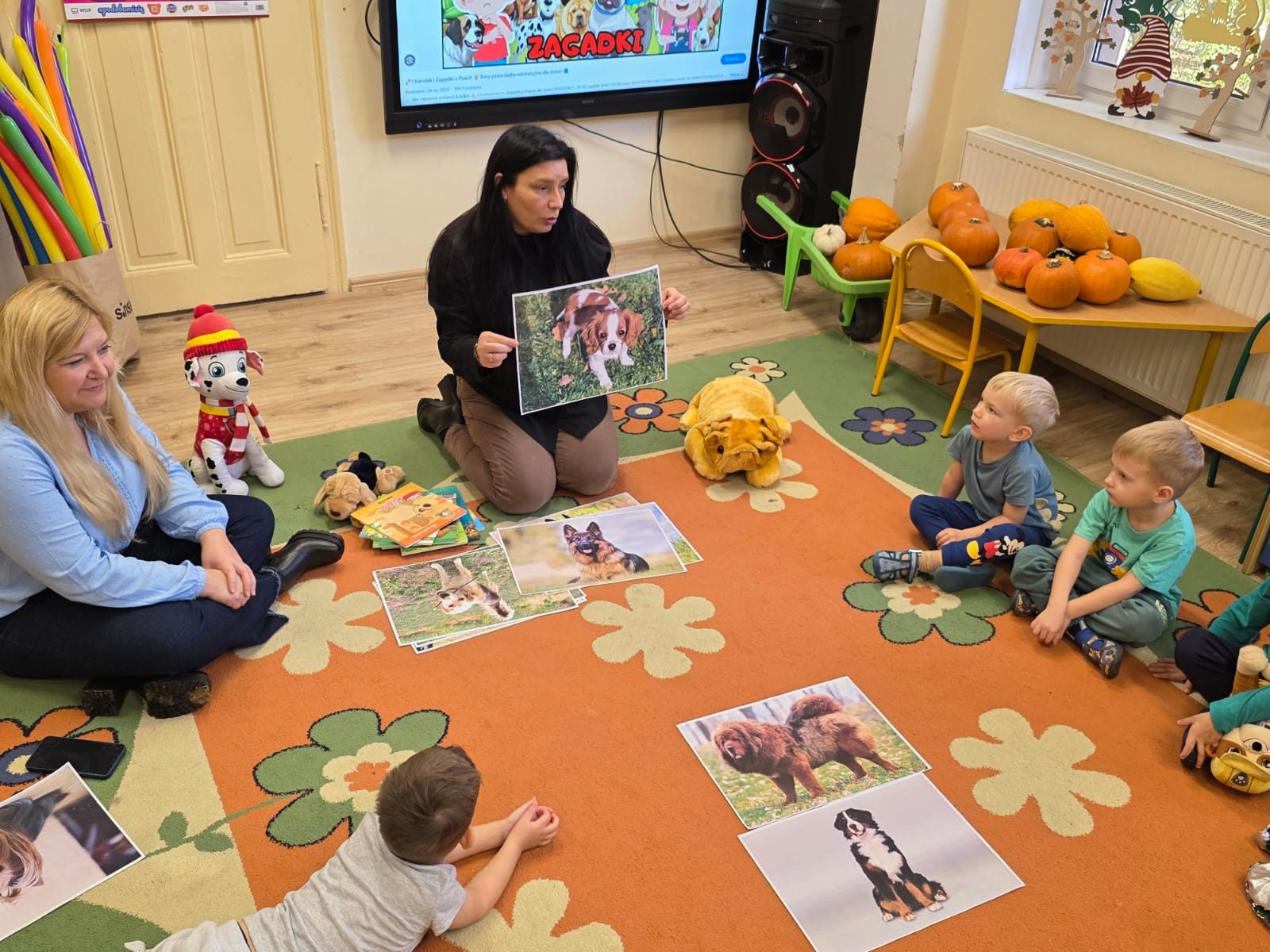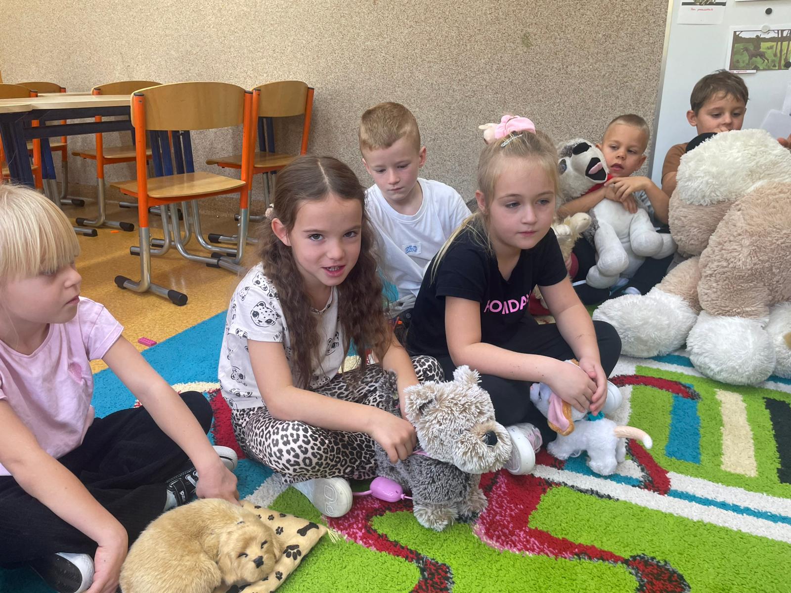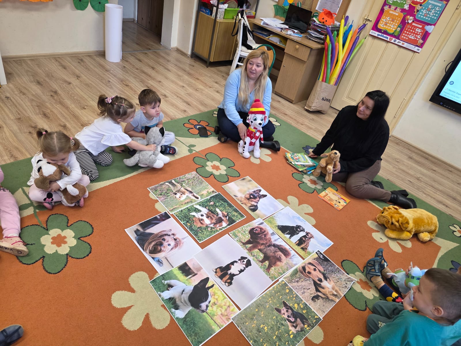 Kultury w Skoroszycach – pani Marta i pani Justynka.Dzieci dowiedziały się wielu ciekawych rzeczy o pieskach – jak o nie dbać, troszczyć się i opiekować nimi. Wysłuchały bajeczki o szczeniaczku, a następnie wspólnie wykonały pieska – pracę plastyczną