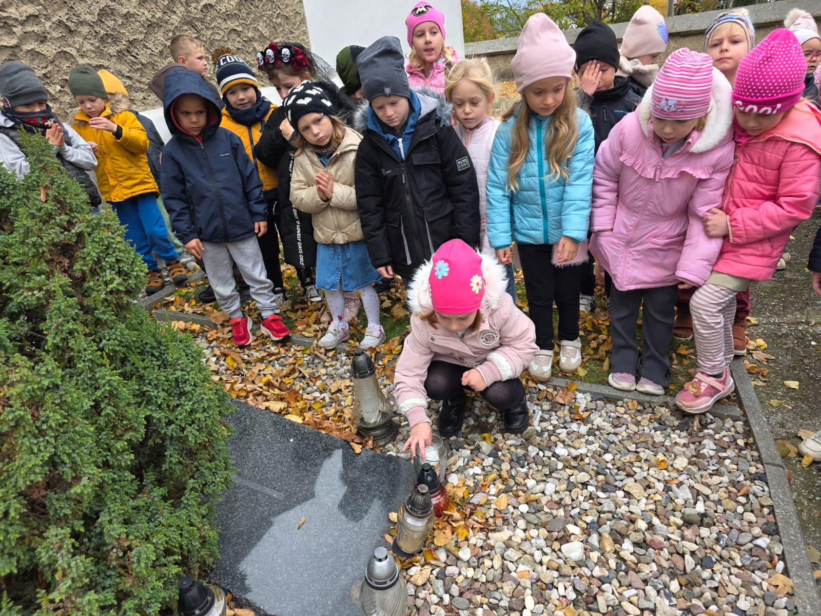 30 października nasze przedszkolaki odwiedziły przykościelny cmentarz, gdzie spoczywa sześciu kapłanów. Dzieci zapaliły znicze i w ciszy oddały hołd zmarłym.