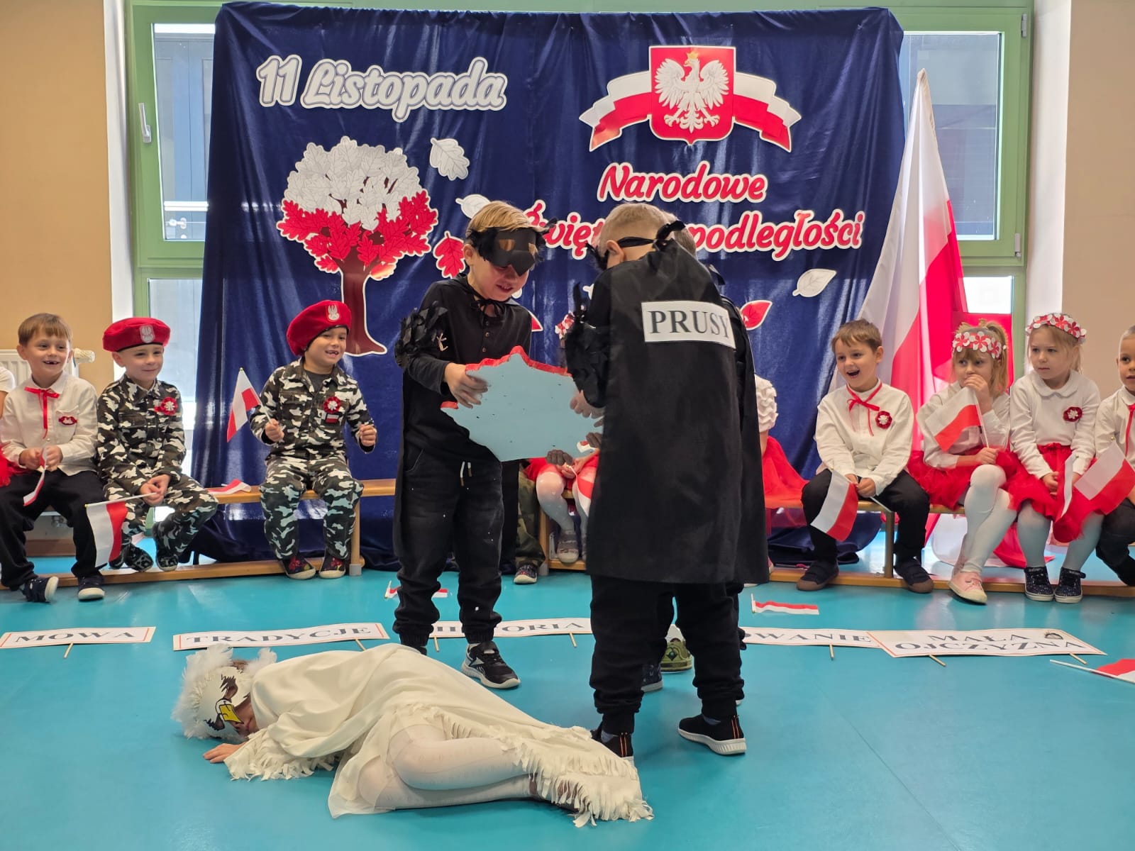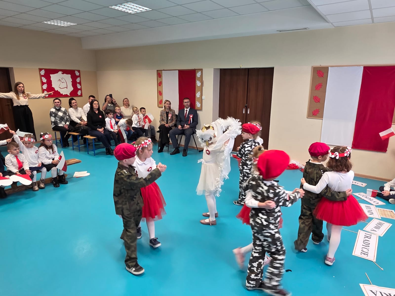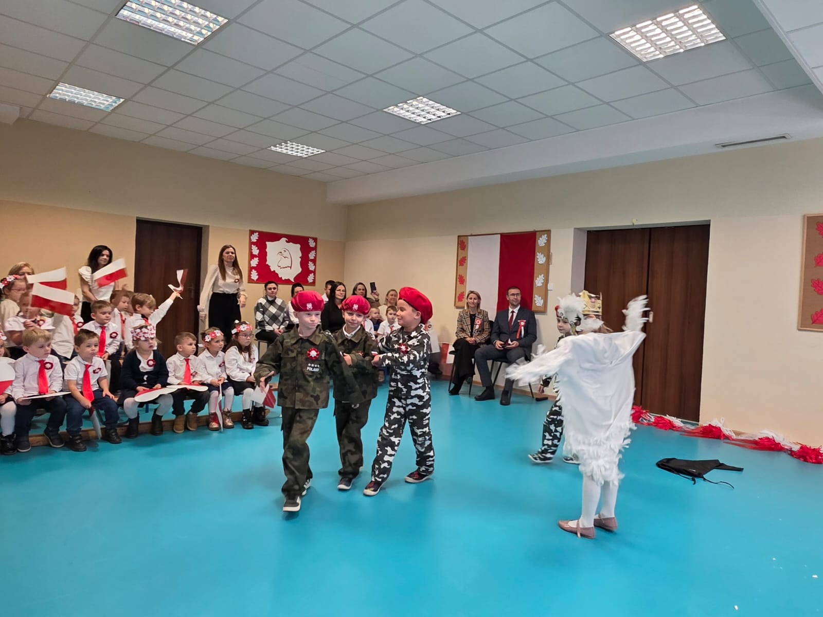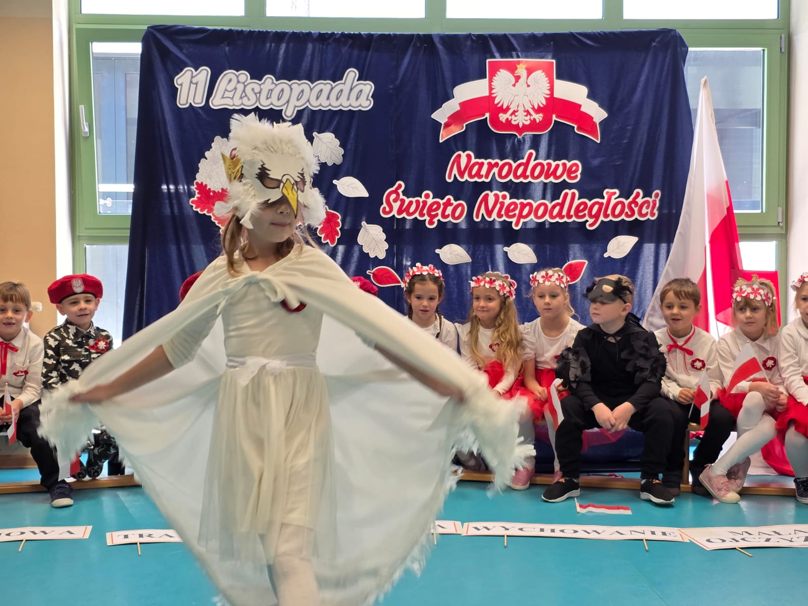 Dzieci pokazały nam w swoim przedstawieniu historię odzyskania przez Polskę niepodległości – była to prawdziwa lekcja patriotyzmu i miłości do Ojczyzny. Z dumą śpiewały pieśni patriotyczne, recytowały wiersze o Polsce oraz zaprezentowały poruszającą inscenizację „Pisk Białego Orła”. Dzieci włożyły w przygotowania dużo pracy i serca – mówiły swoje kwestie z przejęciem, śpiewały i tańczyły z ogromnym zaangażowaniem. Występ był bardzo wymowny, pełen emocji i dumy z naszej Ojczyzny.