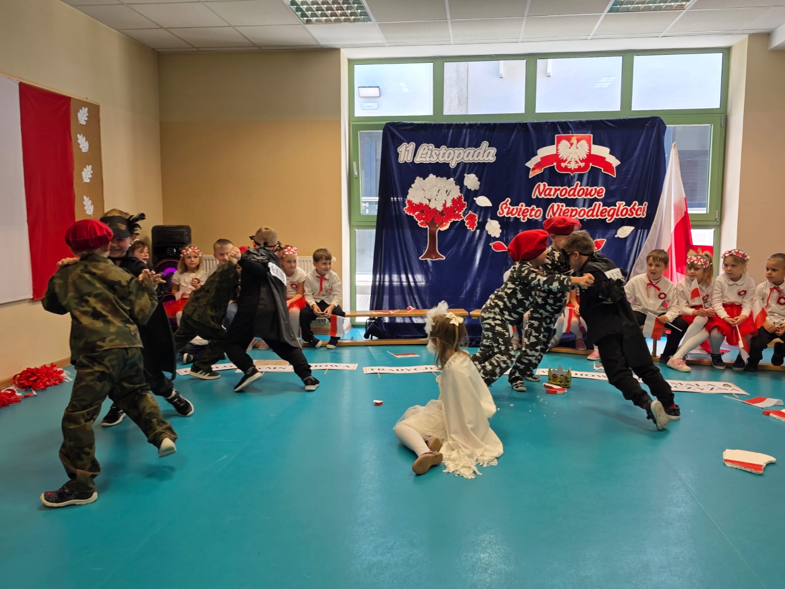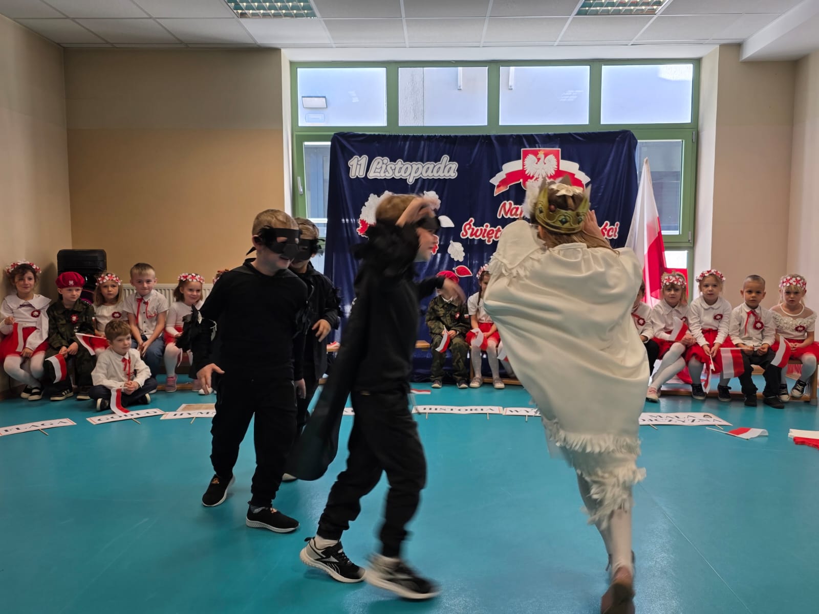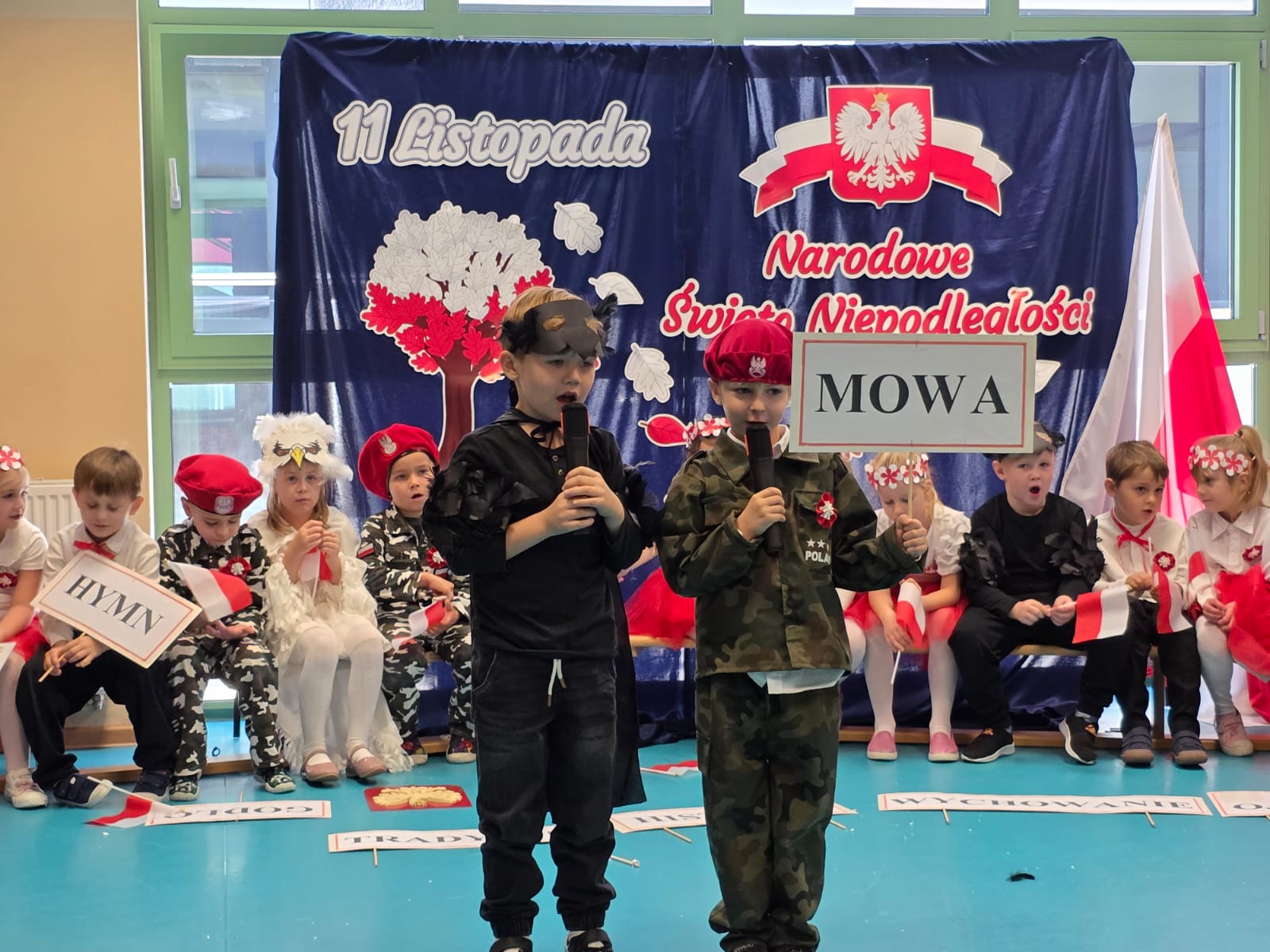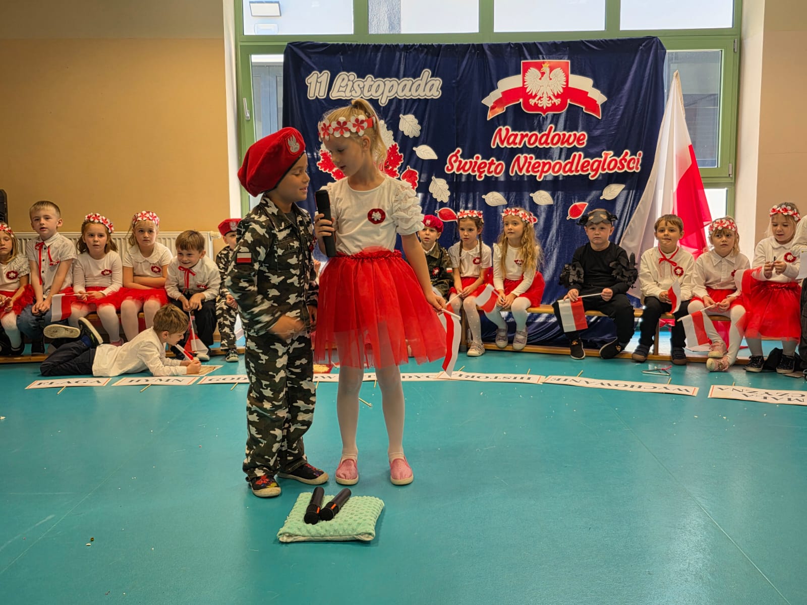 Dzieci pokazały nam w swoim przedstawieniu historię odzyskania przez Polskę niepodległości – była to prawdziwa lekcja patriotyzmu i miłości do Ojczyzny. Z dumą śpiewały pieśni patriotyczne, recytowały wiersze o Polsce oraz zaprezentowały poruszającą inscenizację „Pisk Białego Orła”. Dzieci włożyły w przygotowania dużo pracy i serca – mówiły swoje kwestie z przejęciem, śpiewały i tańczyły z ogromnym zaangażowaniem. Występ był bardzo wymowny, pełen emocji i dumy z naszej Ojczyzny.