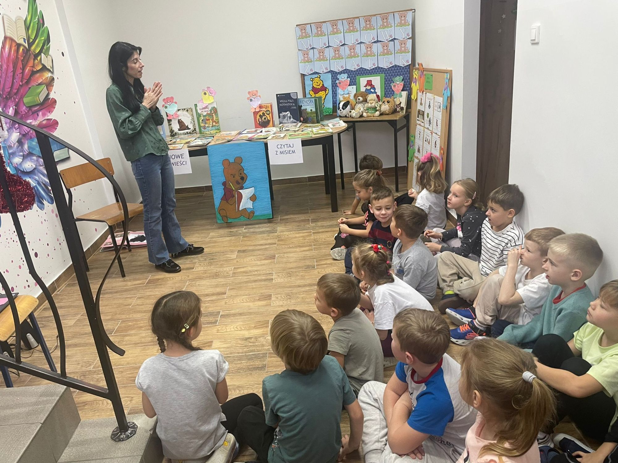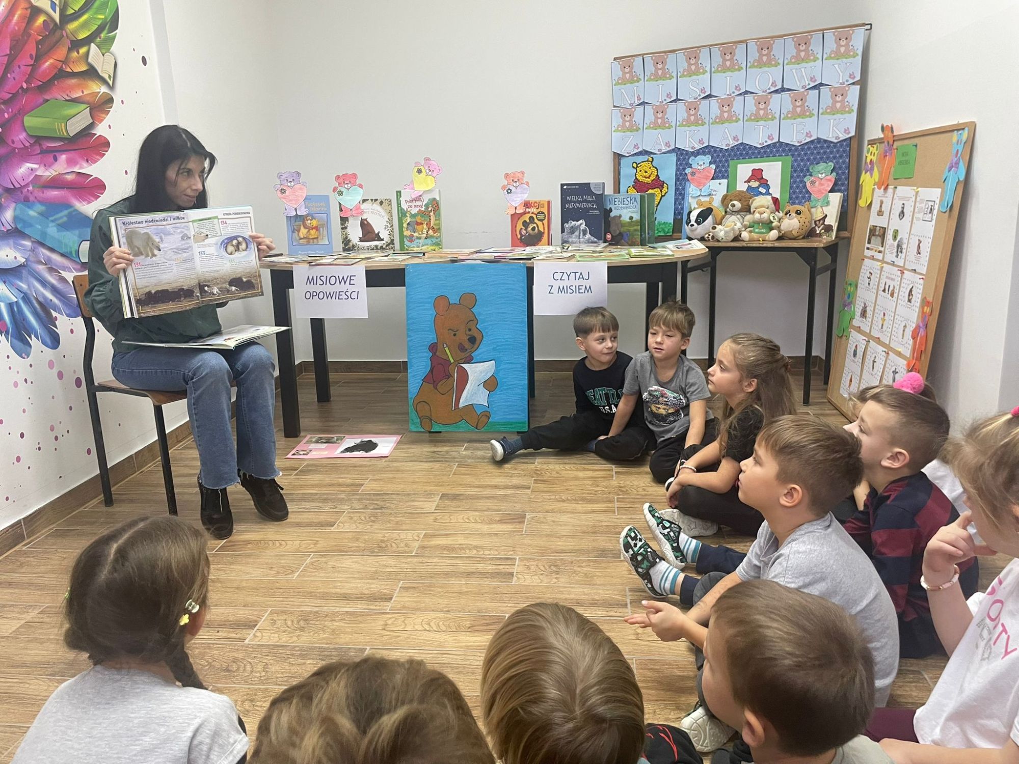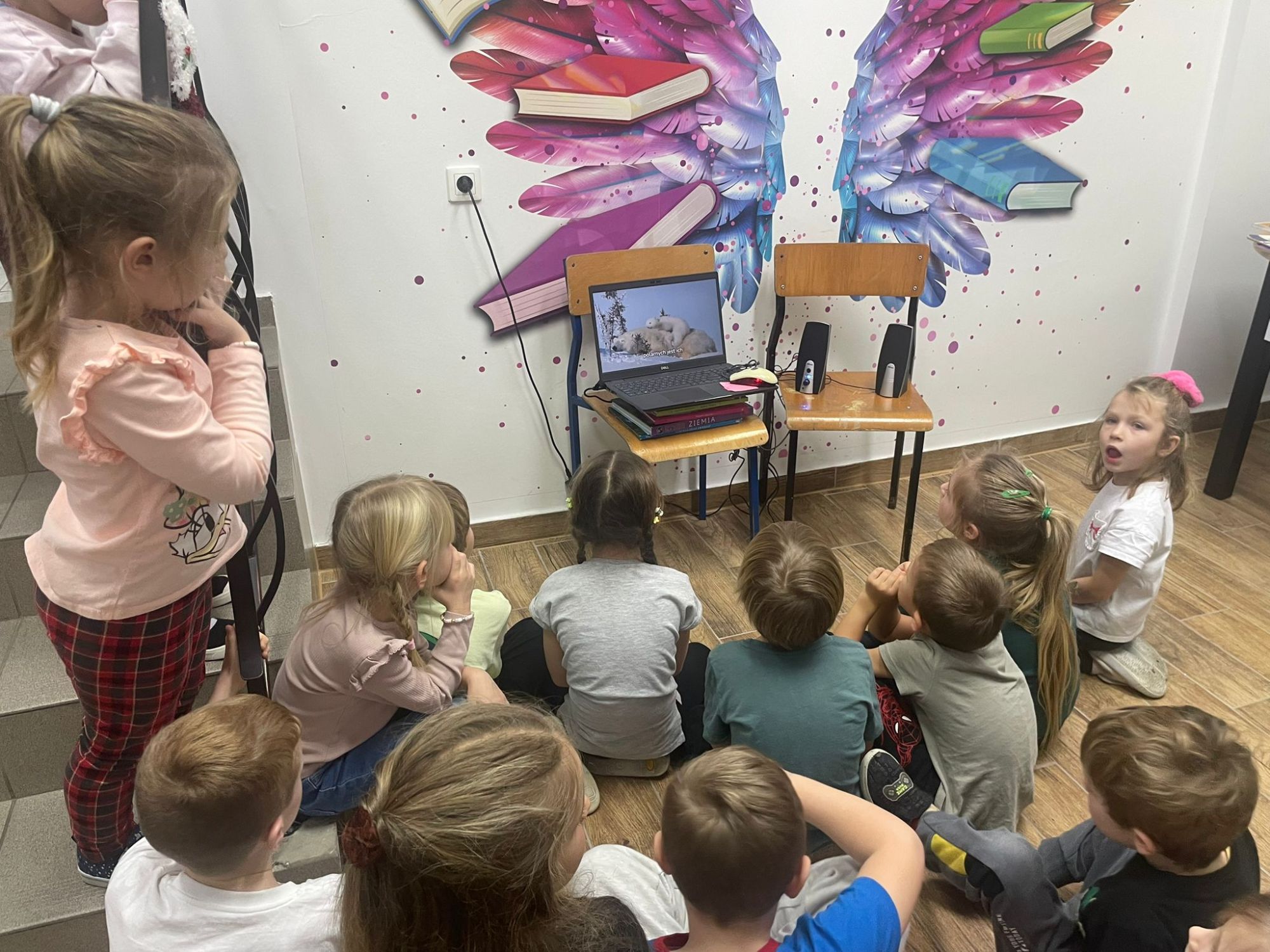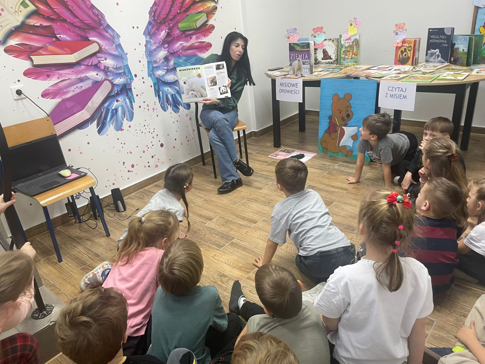Misiowe opowieści z biblioteką: Nasi najmłodsi ze szkoły czyli zerówkowicze odwiedzili bibliotekę szkolną, by móc posłuchać fragmentu opowiadania H. Bechlerowej pt. "Zima z białym niedźwiedziem". To pełna magii opowieść o zaczarowanym niedźwiedziu polarnym Barłaju, który odwiedzał małego Grzesia zimą, gdy wokół wszystko było otulone białym puchem. Ta opowiastka wprowadziła nas wszystkich w zimowy nastrój mimo kapryśnej aury. Bo, kto widząc sypiący śnieg za oknem nie wypatrywałby między jego płatkami sunącego pomału misia. Po lekturze dzieci oglądały krótki film o zwyczajach niedźwiedzia polarnego. Nie zapomnisno także o słodkim poczęstunku - bohaterze dzisiejszego spotkania.