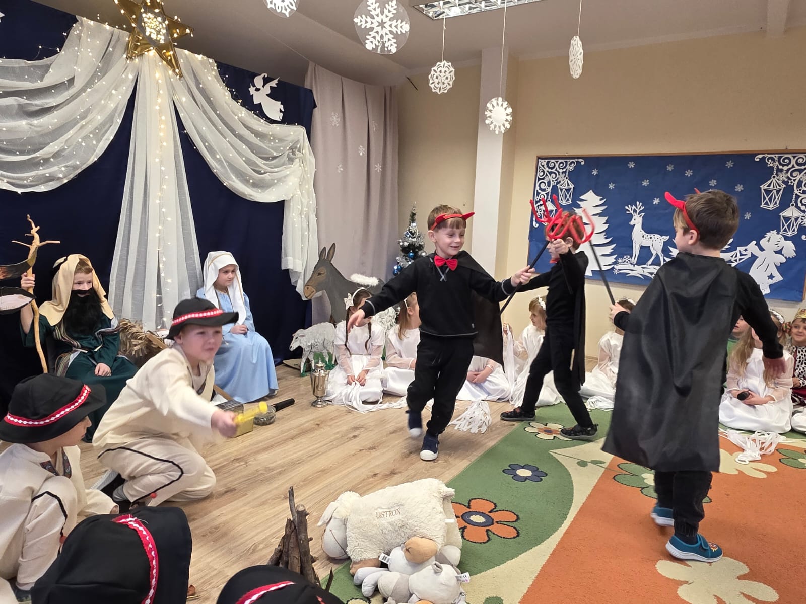 18 grudnia w naszym przedszkolu odbyło się przedstawienie jasełkowe w wykonaniu dzieci sześcioletnich, które zaprezentowały piękną opowieść o narodzeniu Dzieciątka Jezus