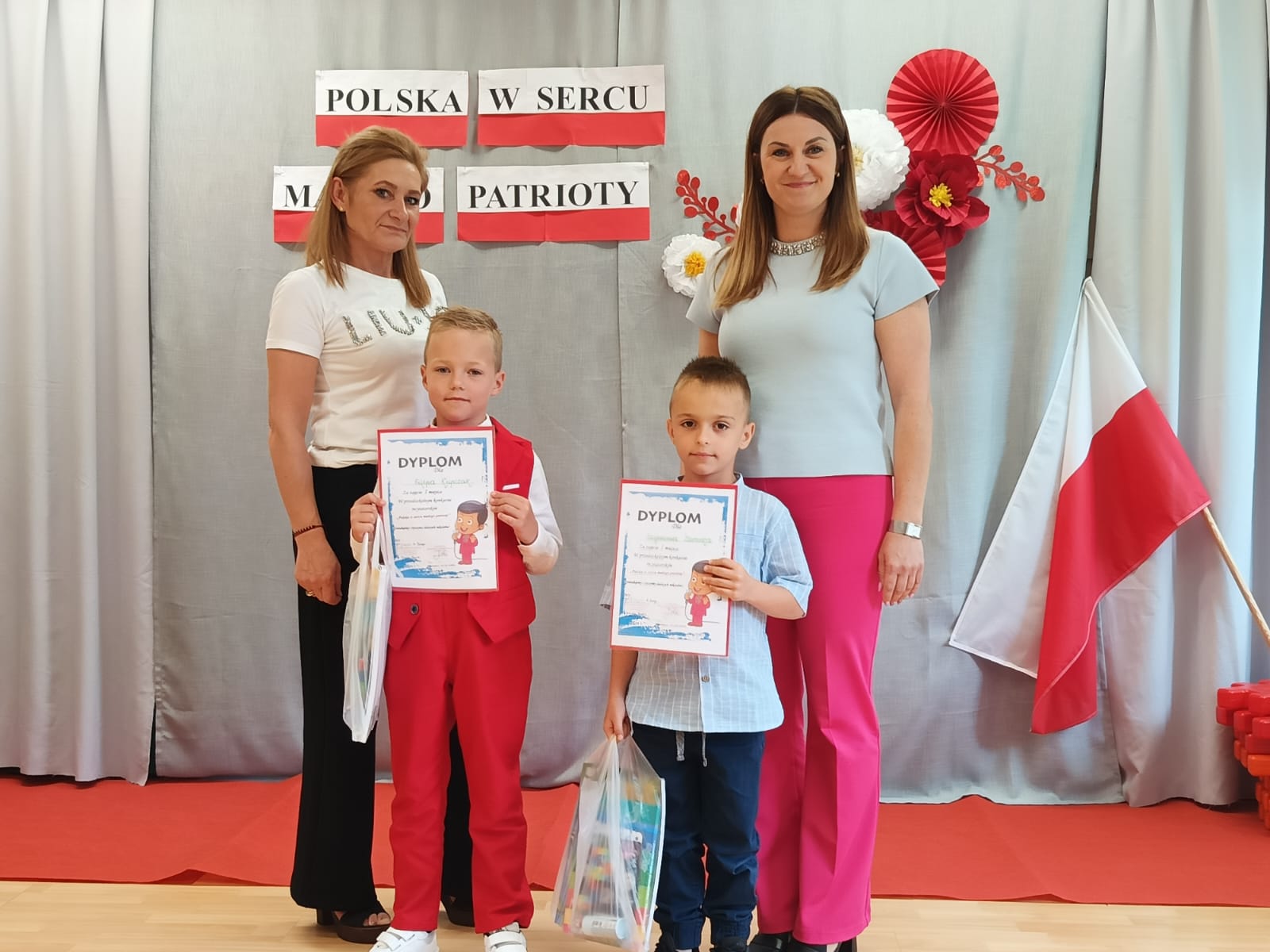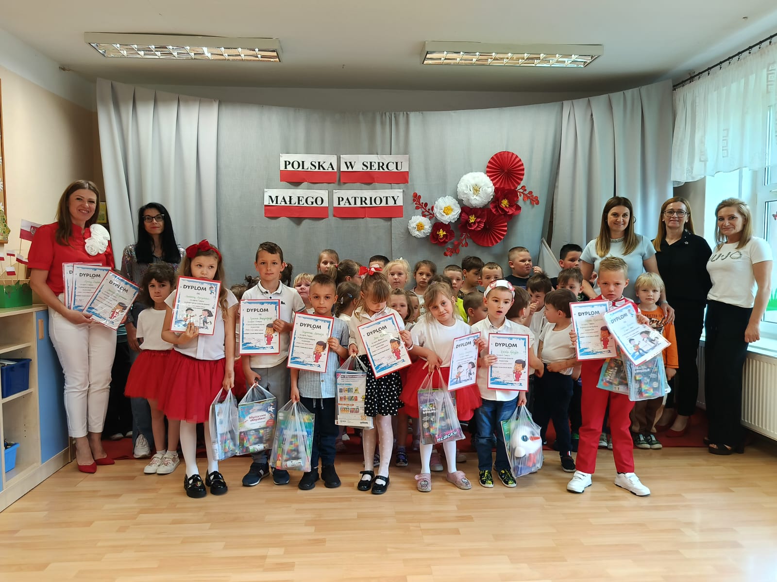 W ramach realizowanej w naszym przedszkolu innowacji pedagogicznej „Kocham Cię, Polsko” zorganizowano konkursy o tematyce patriotycznej pod hasłem „Polska w sercu małego patrioty” .
