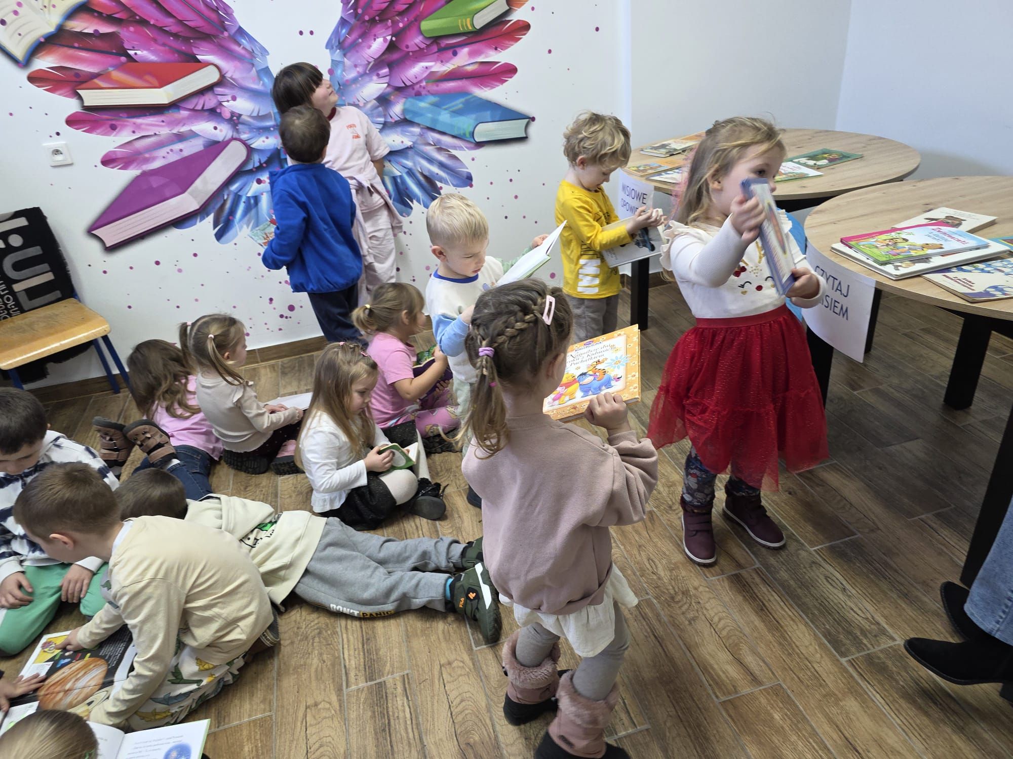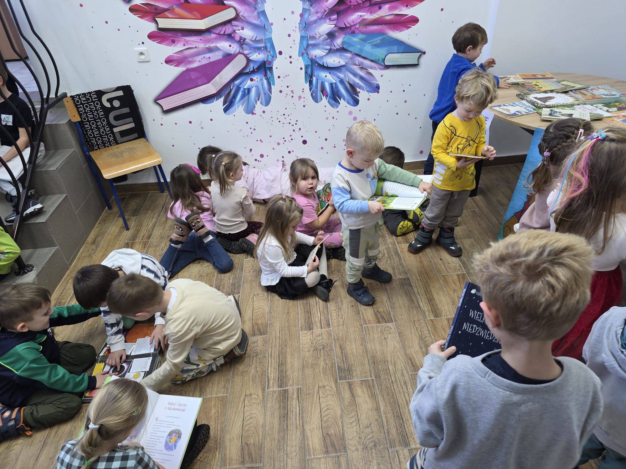 W ramach projektu „Przedszkolaki w Świecie Książek” nasze dzieci odwiedziły dziś bibliotekę szkolną, gdzie odbyły się wyjątkowe zajęcia edukacyjne prowadzone przez panią Beatkę – naszą bibliotekarkę.