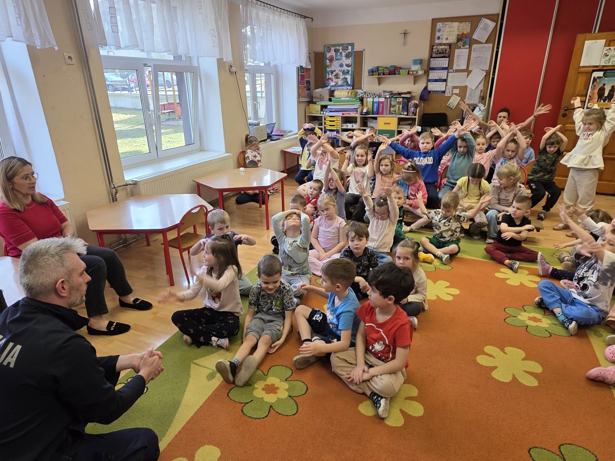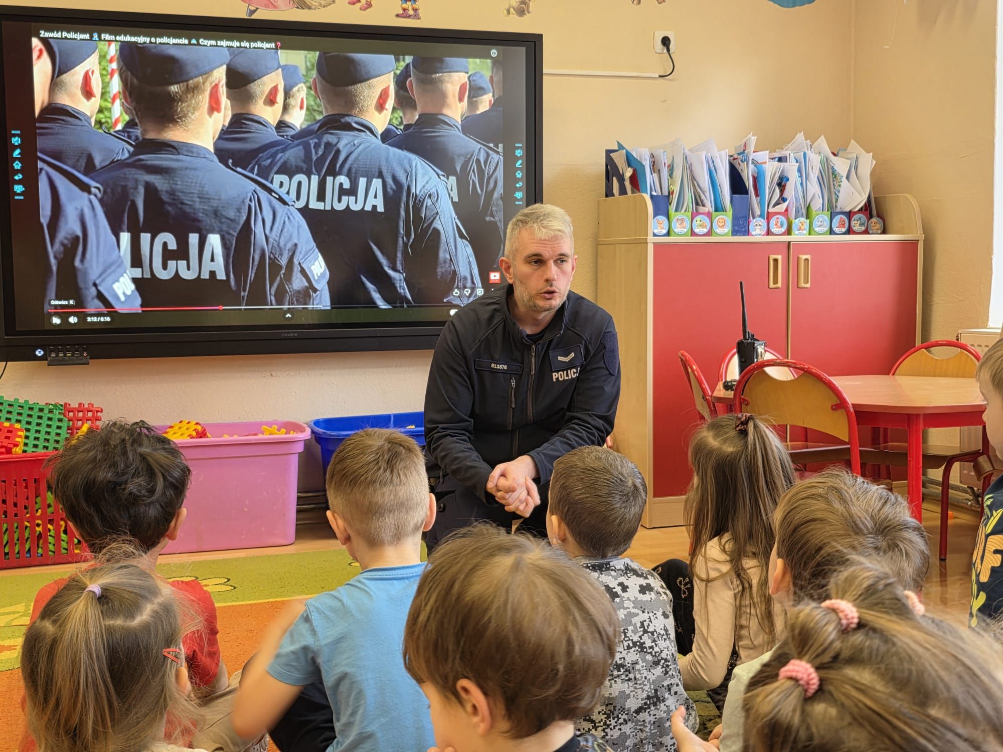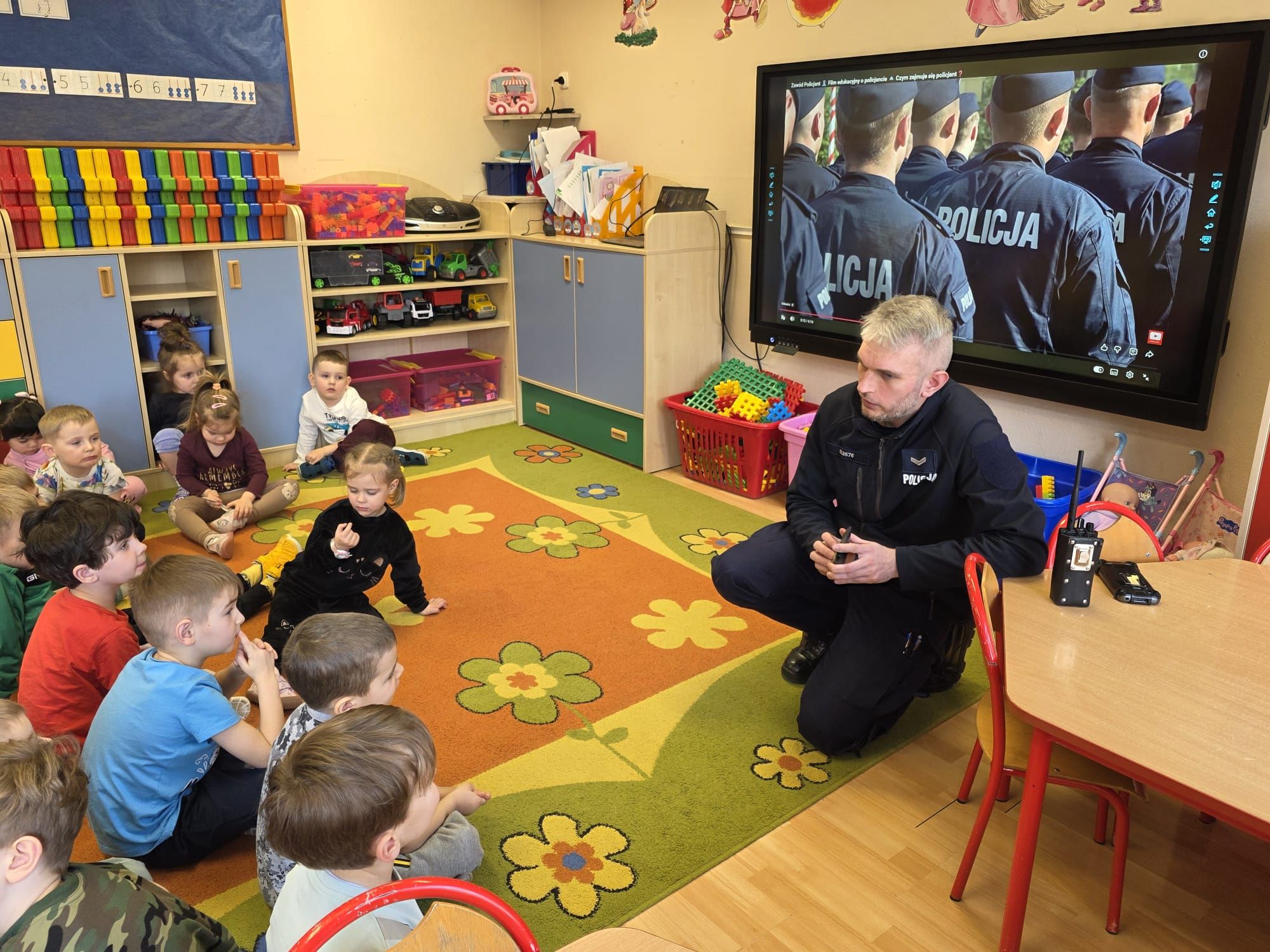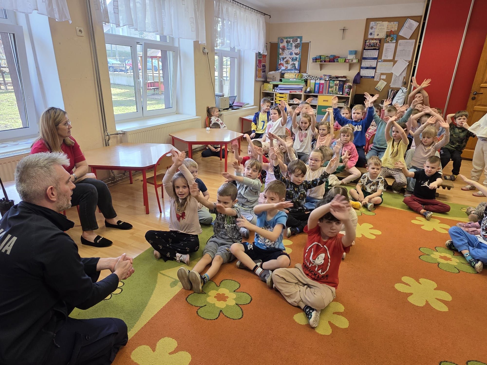 27 lutego w naszym przedszkolu odbyły się zajęcia edukacyjne z dzielnicowym – sierż. Kamilem Nowakiem z Komendy Powiatowej Policji w Nysie