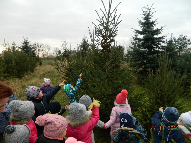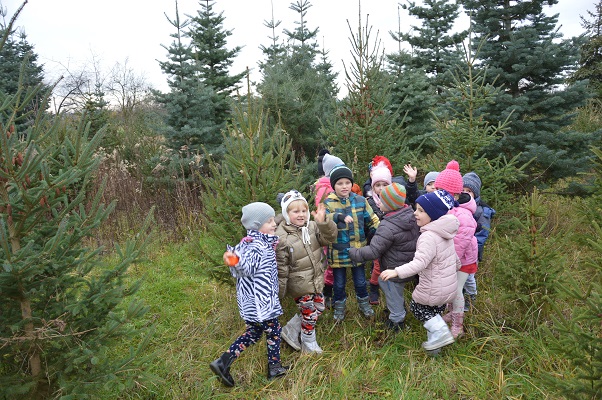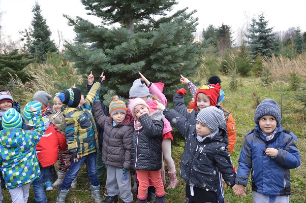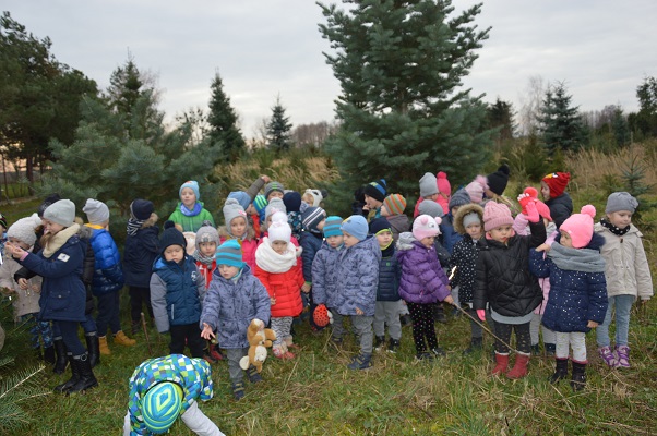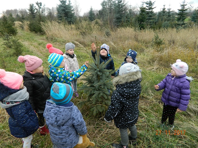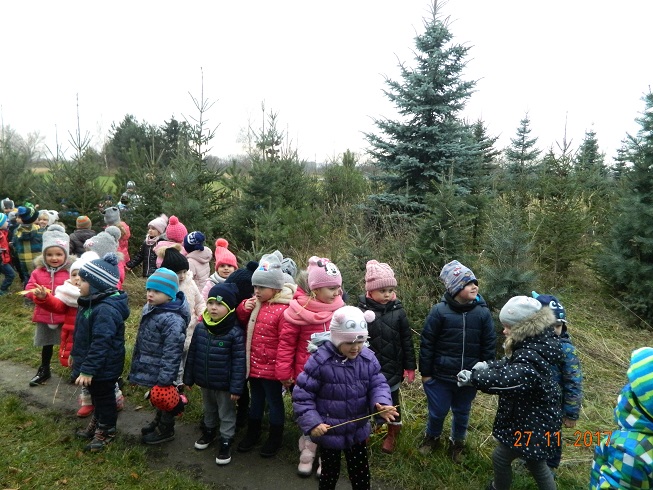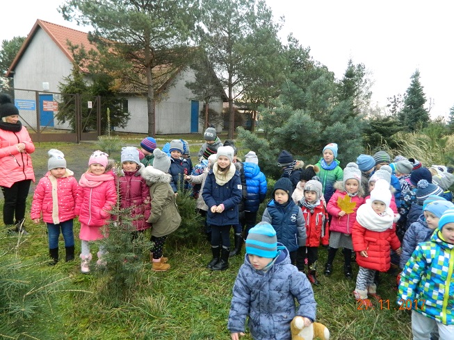 27 listopada 2017r. dzieci z naszego przedszkola zostały zaproszone do szkółki drzewek iglastych p. Maja - tatusia Adasia. Dzieci podziwiały wszystkie drzewka te duże i małe, poznały ich nazwy: świerk, sosna i jodła. Porównywały je i zauważały różnice w wyglądzie ich igieł i szyszek. Kiedy wybrały najpiękniejszą "choinkę", która już niedługo stanie w holu naszego przedszkola, Adaś poczęstował wszystkich cukierkami przyniesionymi przez jego mamę. Bardzo dziękujemy za zaproszenie, drzewko i cukierki!!