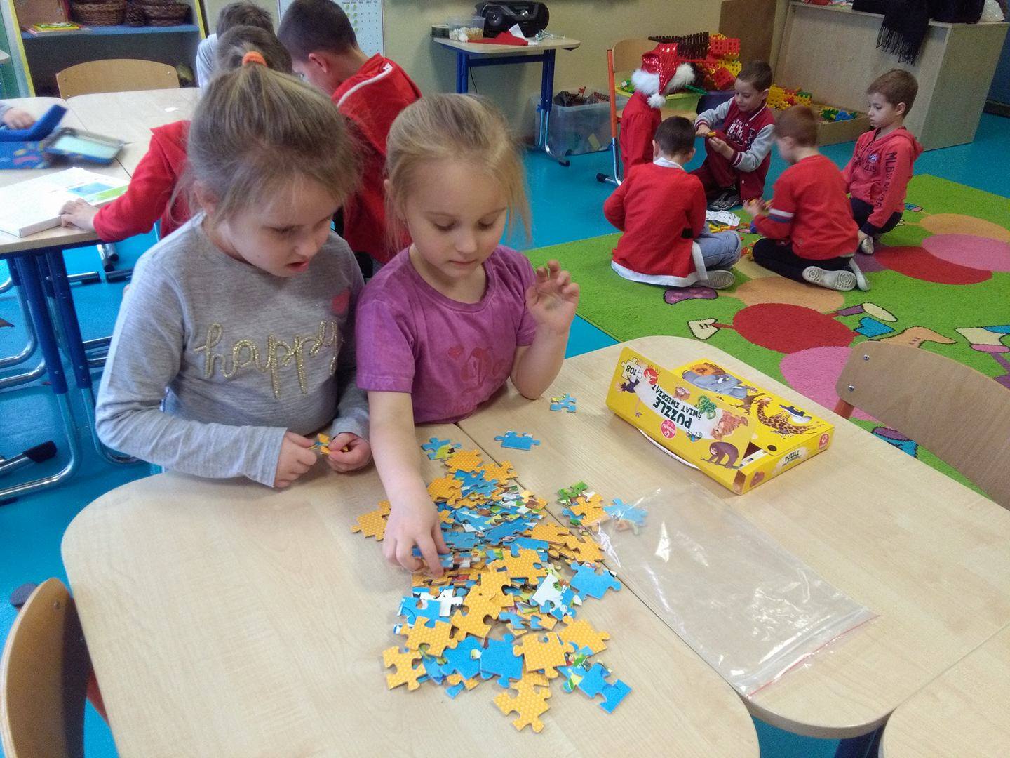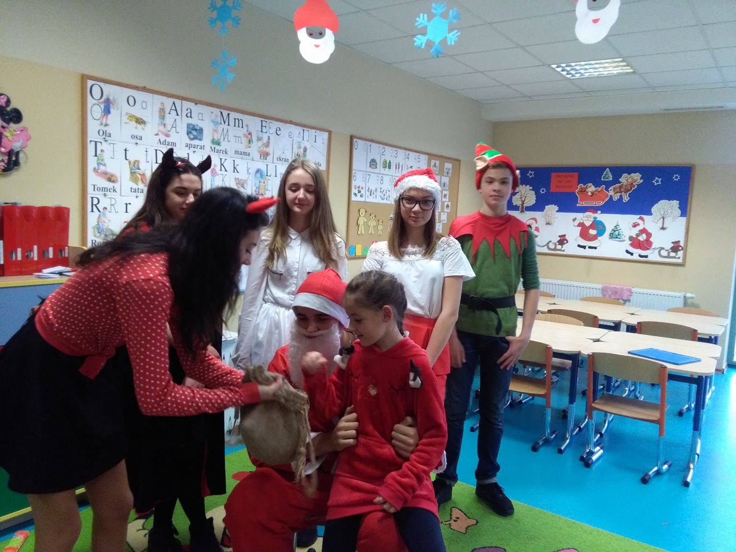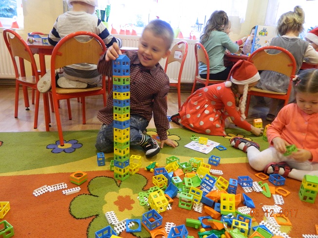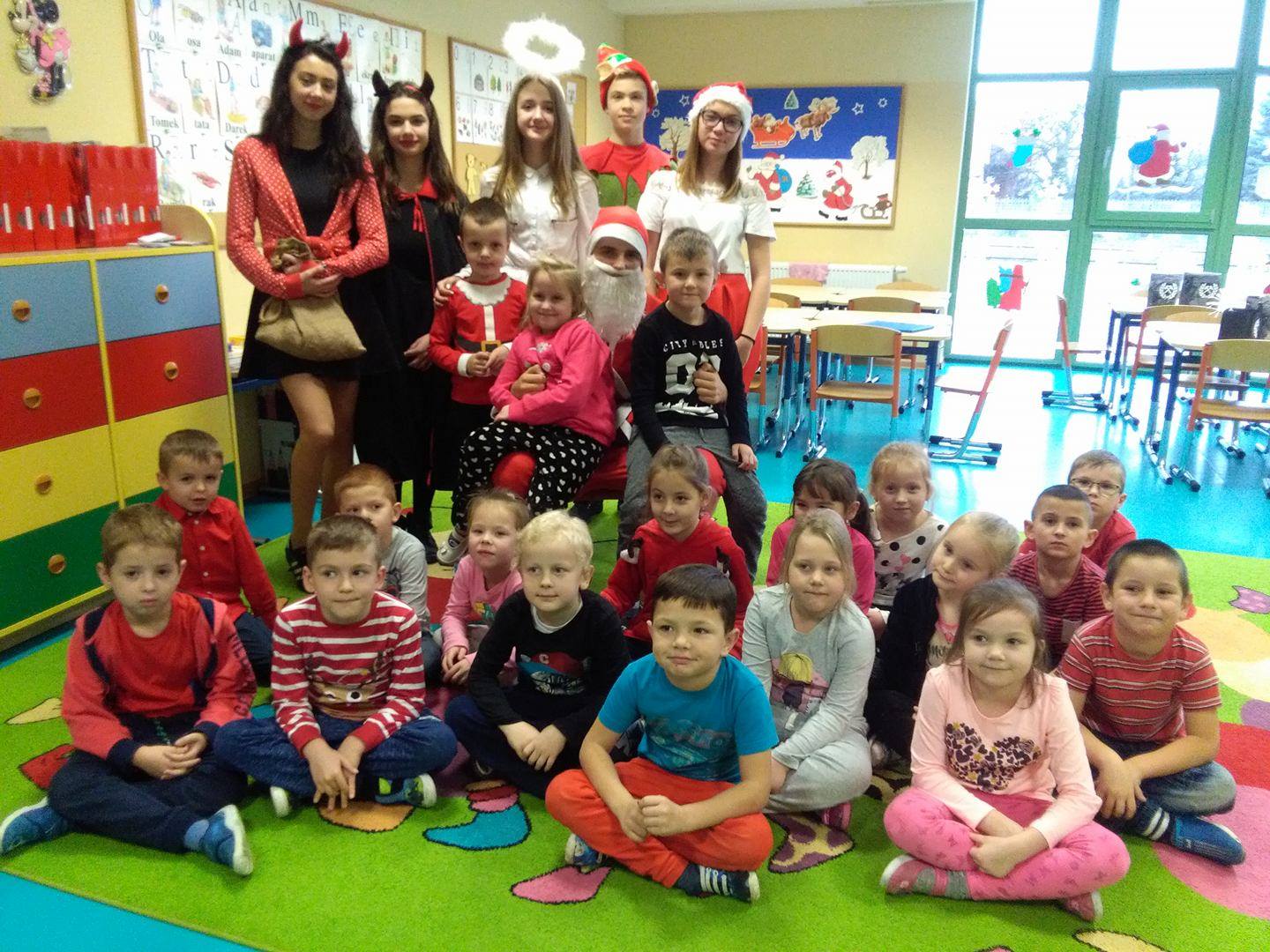 We wtorek 5 grudnia przedszkolaki obejrzały przedstawienie teatralne pt. "Legenda o Świętym Mikołaju" w wykonaniu aktorów z objazdowej gruby teatralnej. Spektakl, wypełniony piosenkami i zabawami ruchowymi z dziećmi, wprowadził wszystkich widzów w radosny, świąteczny nastrój. Piękne dekoracje, stroje i ekspresja aktorów sprawiły, że dzieci oglądały widowisko jak zauroczone i chętne do wszelkiego w nim udziału. Poznały postacie Mikołajów i ich nazwy z różnych krajów, m.in. z Norwegii, Stanów Zjednoczonych Ameryki, Włoch i Rosji. Witały się z tymi Mikołajami w ich językach i bawiły się tanecznie. Przedstawienie to wniosło wiele radości i zaciekawienia tym, co zdawałoby się oczywiste. Na zakończenie Mikołaj wręczył wszystkim dzieciom prezenty. Oprócz prezentów, Mikołaj podarował dzieciom mnóstwo radości i uśmiechu. Rozmawiał z nimi i zachęcał, aby były grzeczne.  Ten magiczny dzień na długo pozostanie w pamięci przedszkolaków. Zdjęcia zrobione z Mikołajem, będą wspaniała pamiątką tego spotkania.