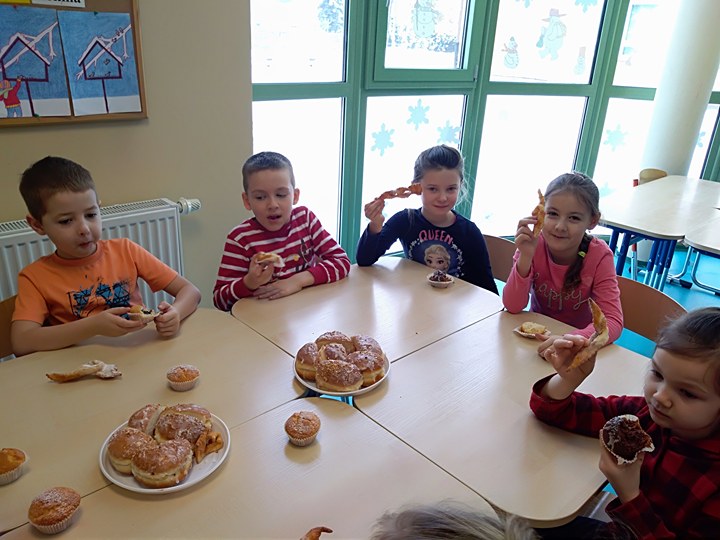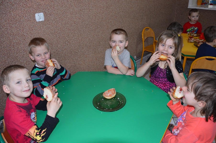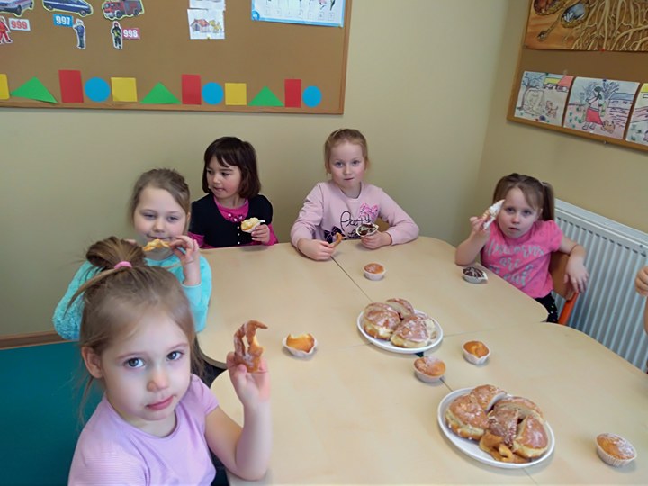 W tym roku tłusty czwartek obchodziliśmy 8 lutego . Najważniejszym akcentem tłustego czwartku są pączki. Oczywiście nie odbyło się bez ich degustacji w naszym przedszkolu. Wszyscy zajadali się słodkimi pysznościami. Była to okazja do świetnej zabawy, ale także do przypomnienia i kultywowania naszych narodowych tradycji i zwyczajów.