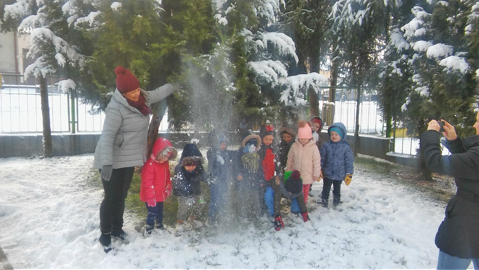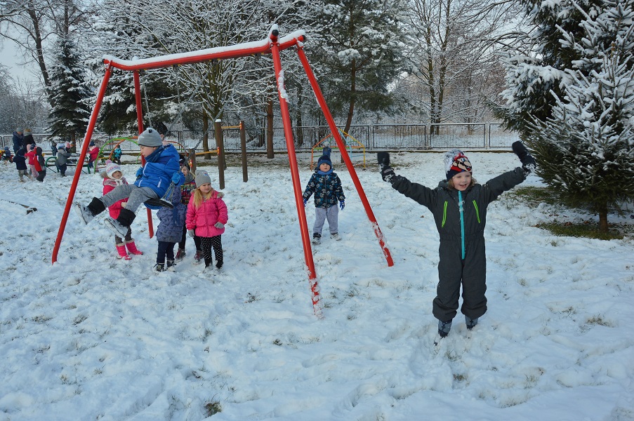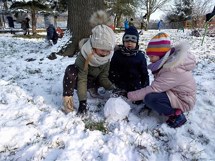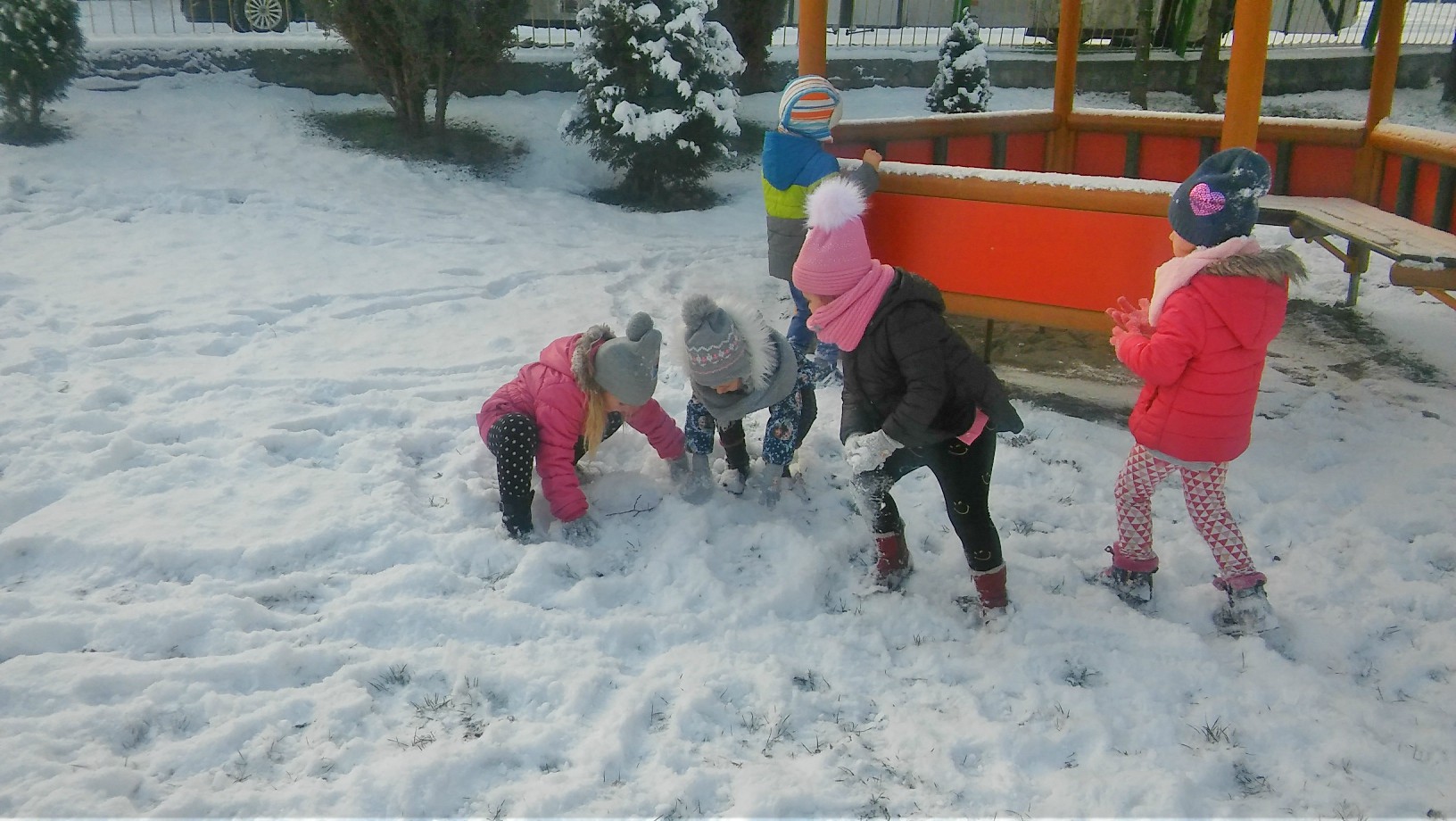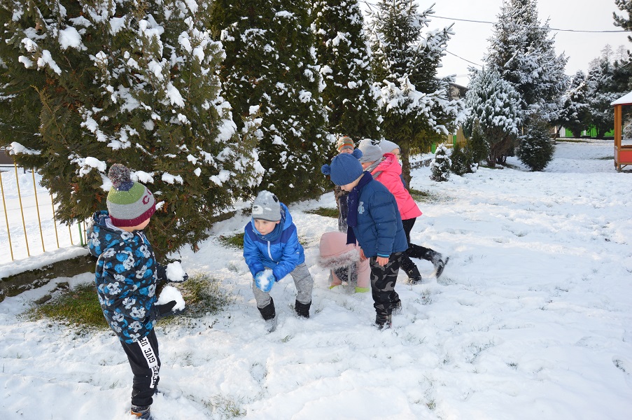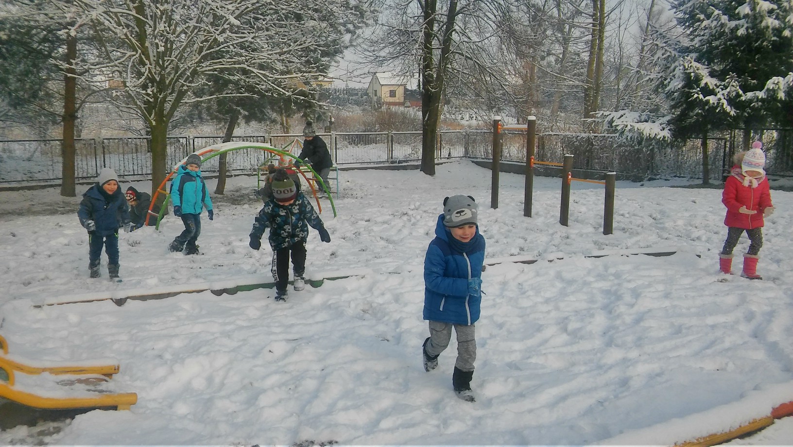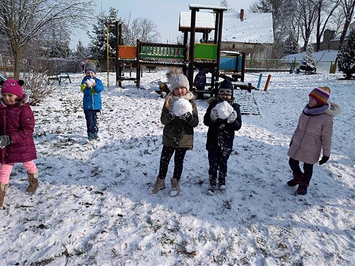 Pani Zima wreszcie postanowiła obdarować nas puszystym śniegiem i sprawiła nam wielką radość. Z tego powodu dzieci z naszej grupy dbając o zdrowie i hartując organizm wybrały się na przedszkolny plac zabaw. W końcu mogliśmy urządzić wesołe zabawy na śniegu. Dzieci miały ogromną frajdę i wiele radości. Szkoda tylko, że nie udało się nam ulepić bałwana, ale może następnym razem…