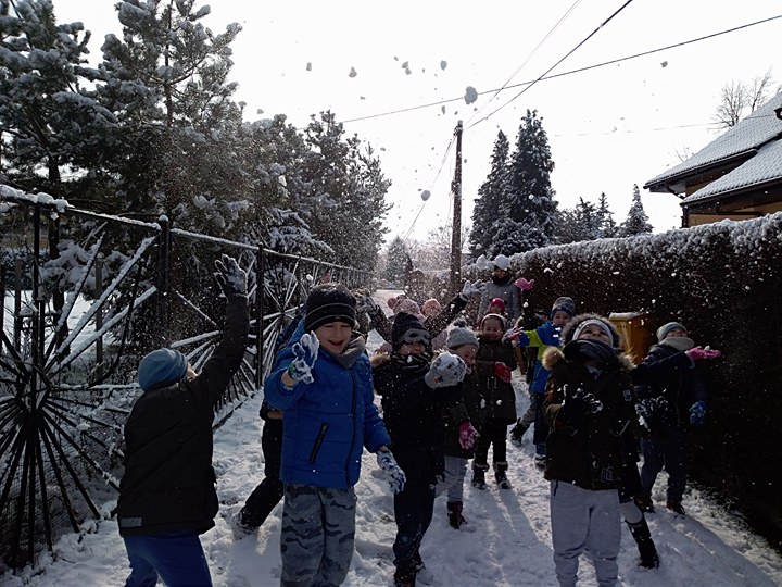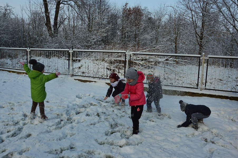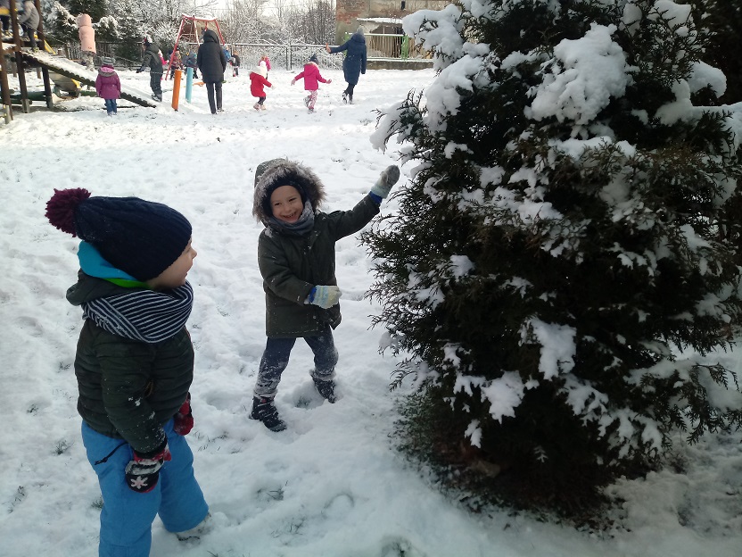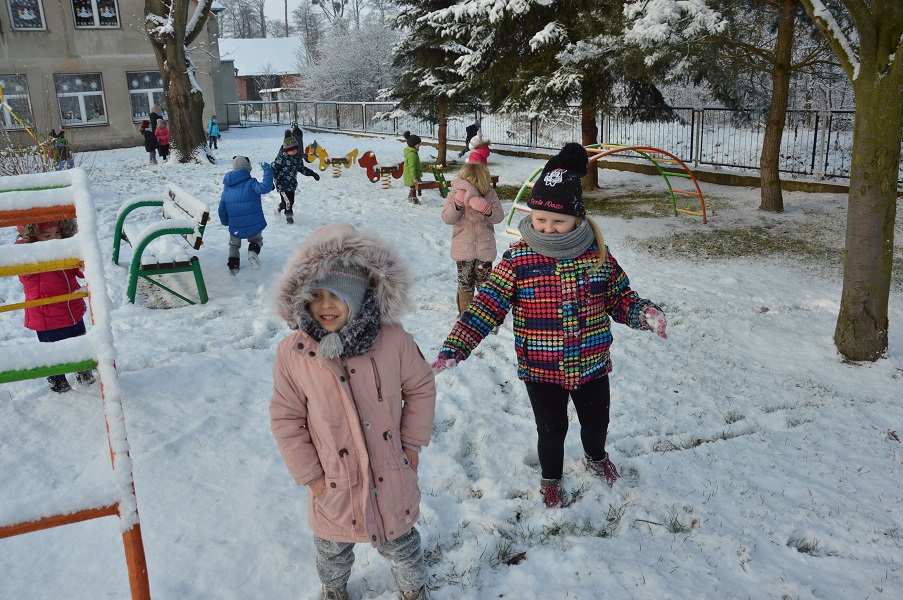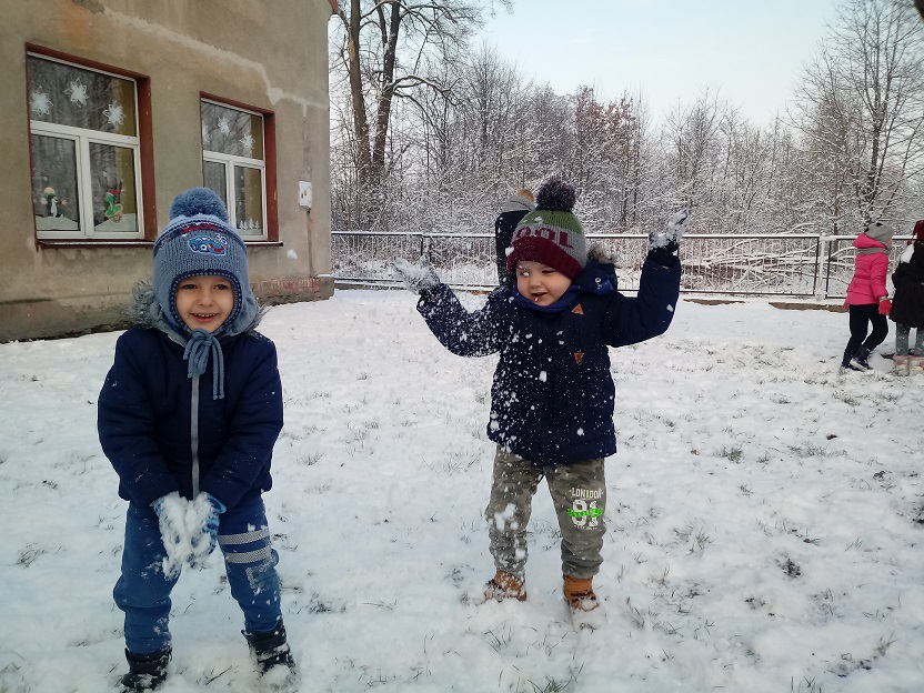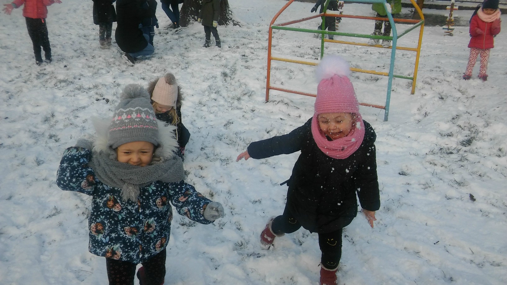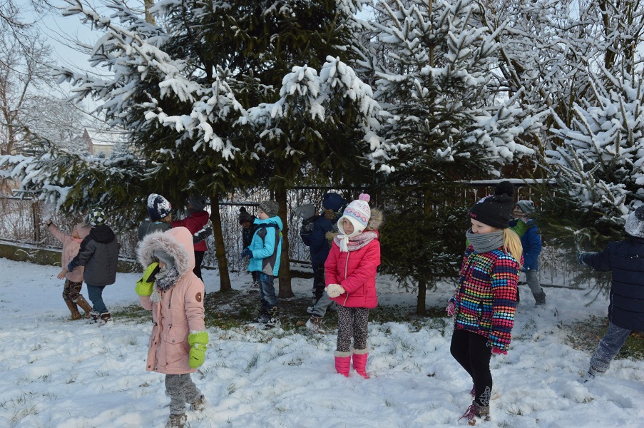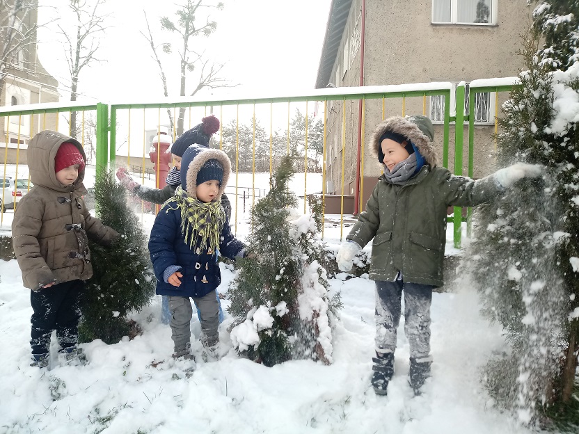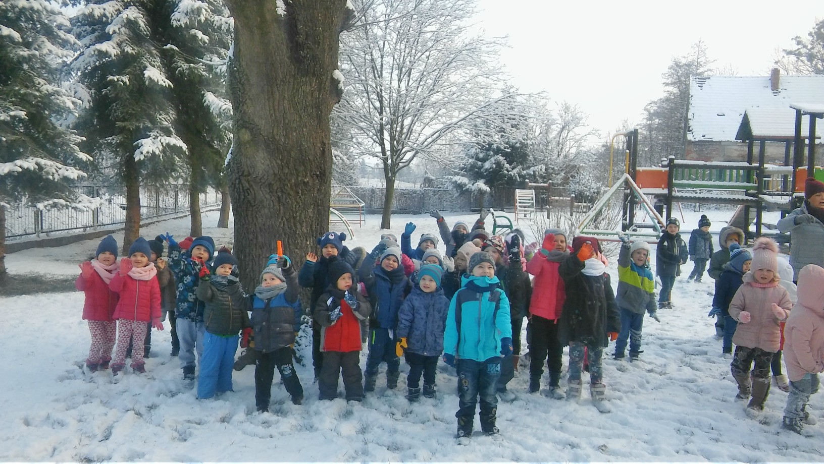 Pani Zima wreszcie postanowiła obdarować nas puszystym śniegiem i sprawiła nam wielką radość. Z tego powodu dzieci z naszej grupy dbając o zdrowie i hartując organizm wybrały się na przedszkolny plac zabaw. W końcu mogliśmy urządzić wesołe zabawy na śniegu. Dzieci miały ogromną frajdę i wiele radości. Szkoda tylko, że nie udało się nam ulepić bałwana, ale może następnym razem…
