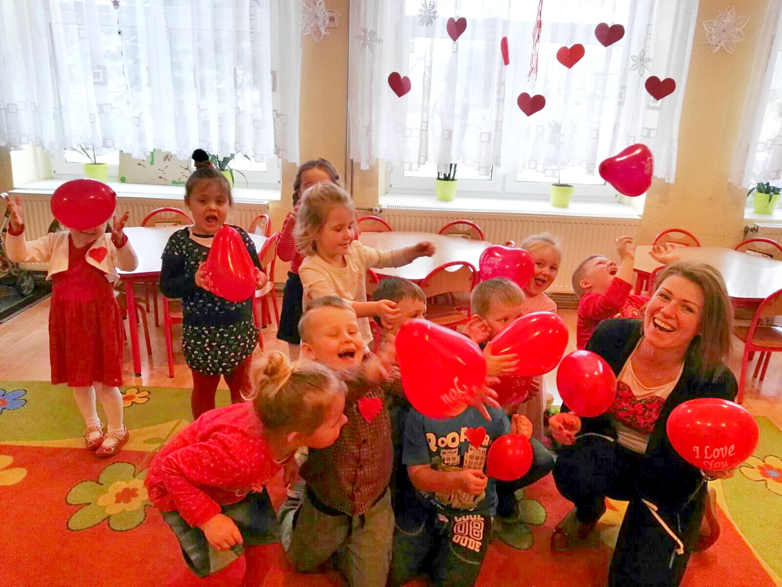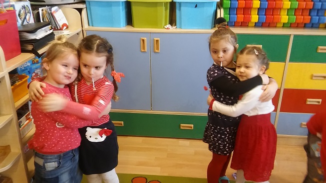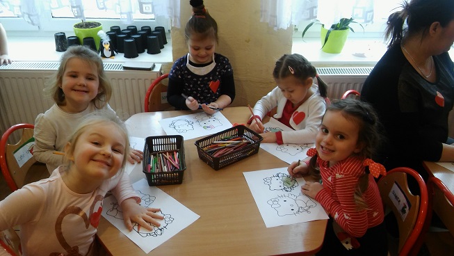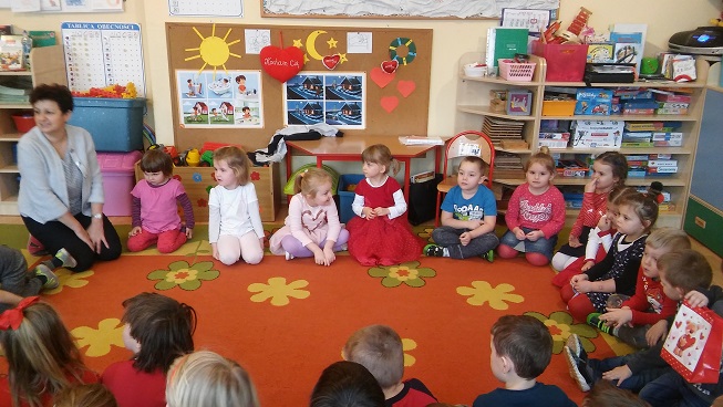 Walentynki to może nie jest polska tradycja, ale motyw serca pojawia się tak często w naszej kulturze i języku, że warto do niego nawiązać. Każda okazja jest dobra, by przekazać dzieciom nieco wiedzy i nauczyć czegoś pożytecznego. Dzisiejsza imprezka w przedszkolu, oprócz kultywowania tradycji walentynkowej, miała na celu zachęcanie dzieci do okazywania uczuć innym osobom (kolegom, koleżankom, rodzicom itp.), nawiązanie kontaktów interpersonalnych w czasie wspólnych zabaw oraz czerpanie radości ze wspólnej zabawy i pobytu w przedszkolu.