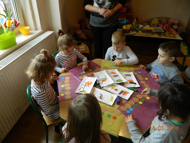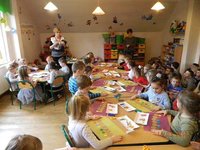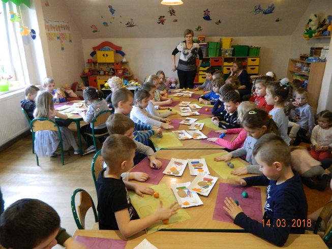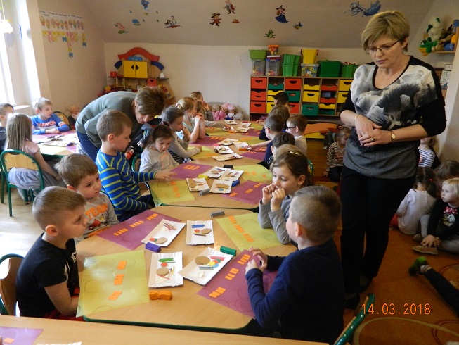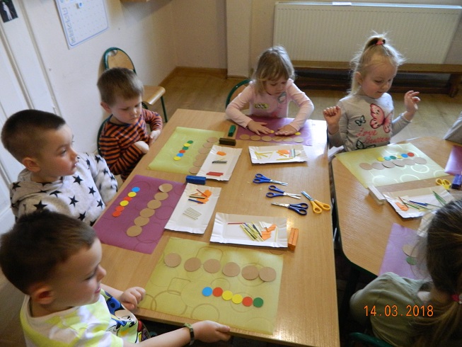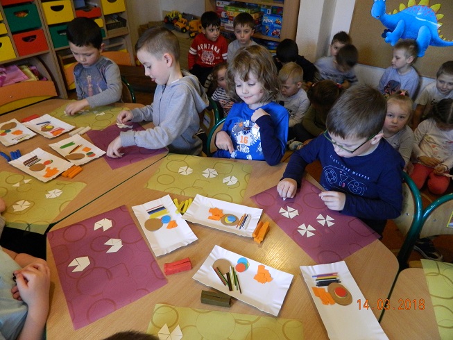 14 marca 2018r. pani Weronika Soja - wychowawczyni grupy 5-latków, przeprowadzila z przedszkolakami zajęcia matematyczne z wykorzystaniem metody Edyty Gruszczyk-Kolczyńskiej, na których dzieci przeprowadzały doświadczenia i eksperymenty operacyjnego rozumowania na poziomie konkretnym w zakresie ustalenia stałości nieciągłych.