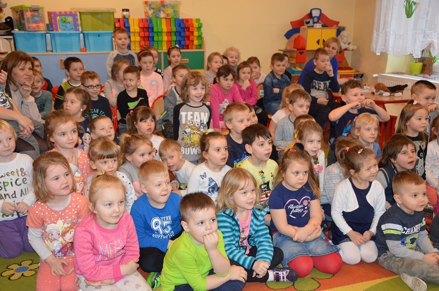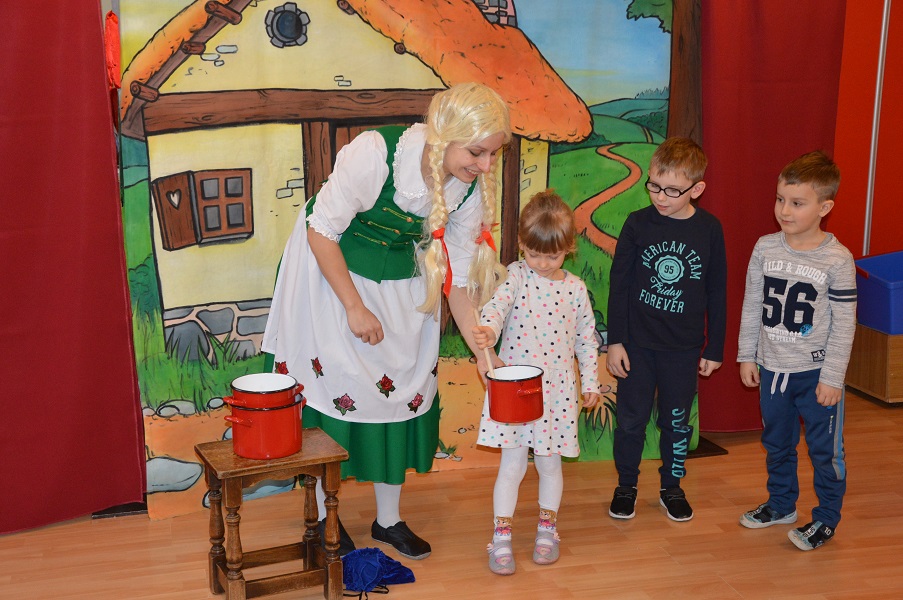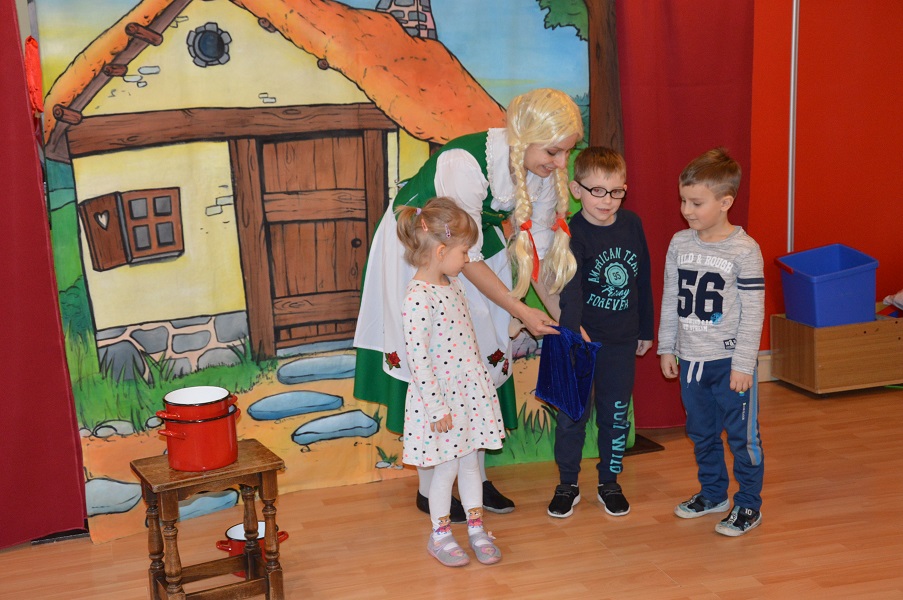 W dniu 16.03.2018r. przyjechał do nas teatrzyk Bajkowe Skarbki Śląska aby zaprezentować nam przedstawienie pt. "Dwie siostry". Podczas przedstawienia przedszkolaki dowiadują się, że tylko uczciwa praca i dobroć popłaca a lenistwo wręcz przeciwnie. Poznają Utopćca – postać wodnika znanego w śląskim folklorze. Teatrzyk uczy szacunku dla starszych, wartości pracy a także poszanowania dla cudzej własności. Piękne stroje, sceneria a także treść przedstawienia wywarła na przedszkolakach ogromne wrażenie.