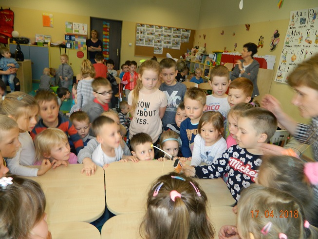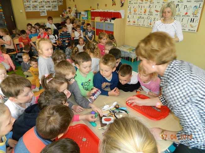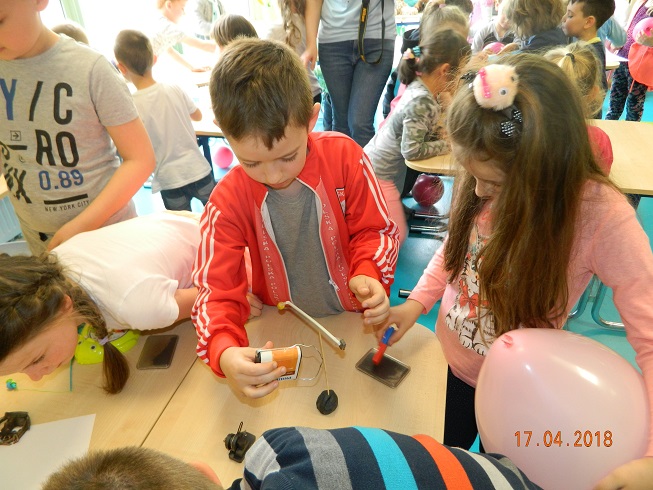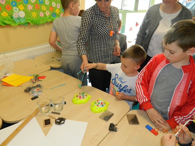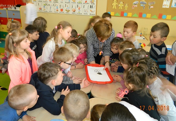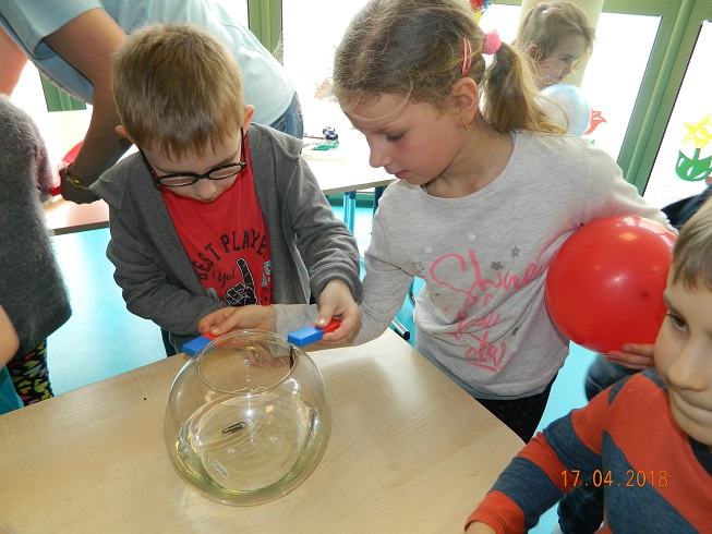 Przedszkolaki nasze miały możliwość poznania właściwości magnesu w toku wielu ciekawych zabaw i eksperymentów. W kwietniu bowiem odbyły się zajęcia badawcze, których celem było poznanie właściwości magnesu za pomocą doświadczeń i obserwacji. Zajęcia przygotowala i przeprowadziła pani Jolanta Szyjka- wychowawca grupy 6-latków.