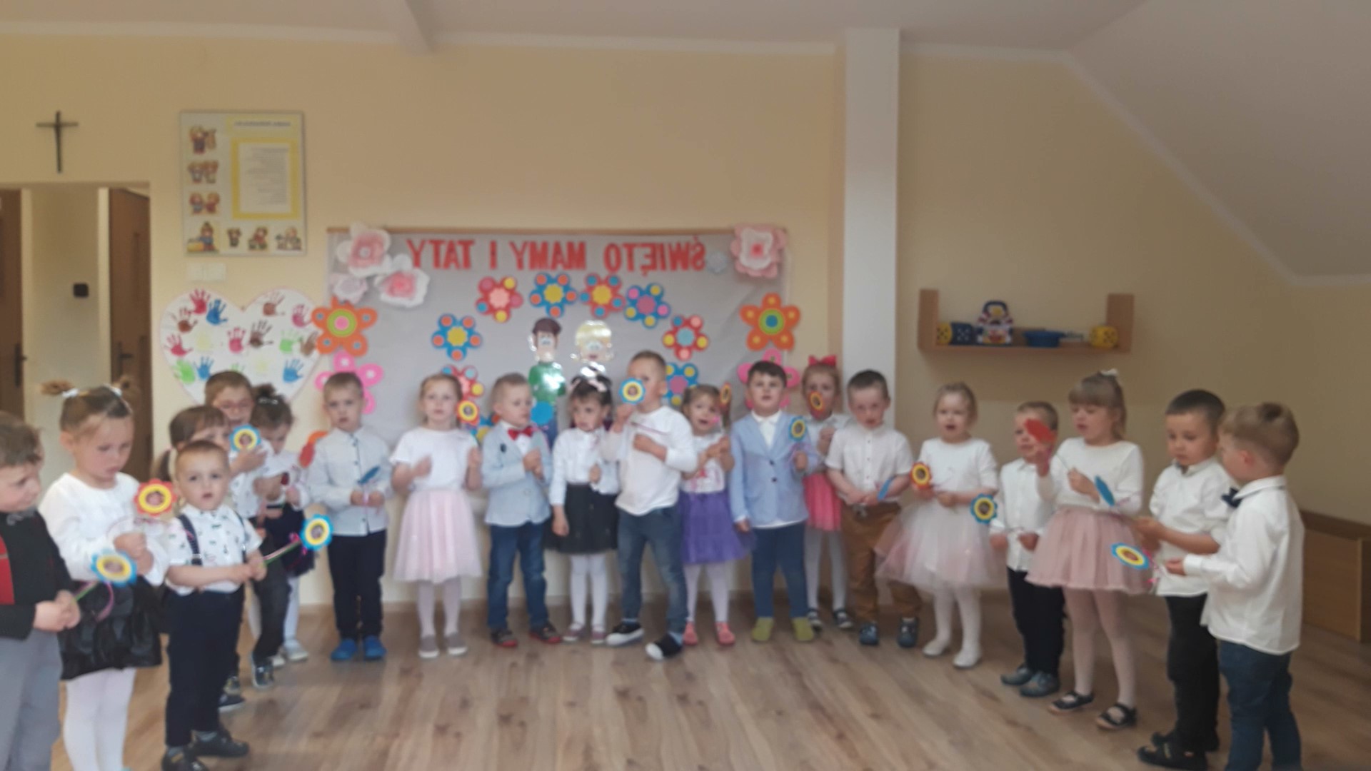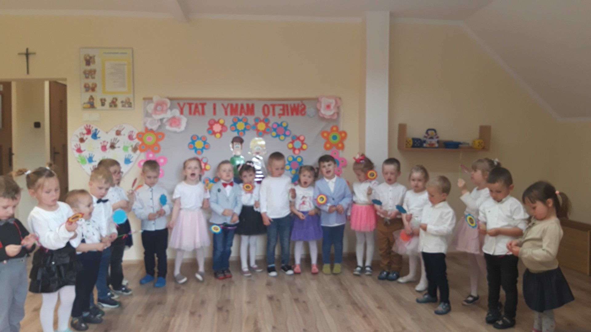 26 maja dzieci z każdej grupy wiekowej przygotowały wspaniałe programy artystyczne dla swoich Mam i Tatusiów. Piosenki, wiersze,układy taneczne oraz krótkie  inscenizacje  zostały uwiecznione na filmikach i wysłane do rodzicow.
