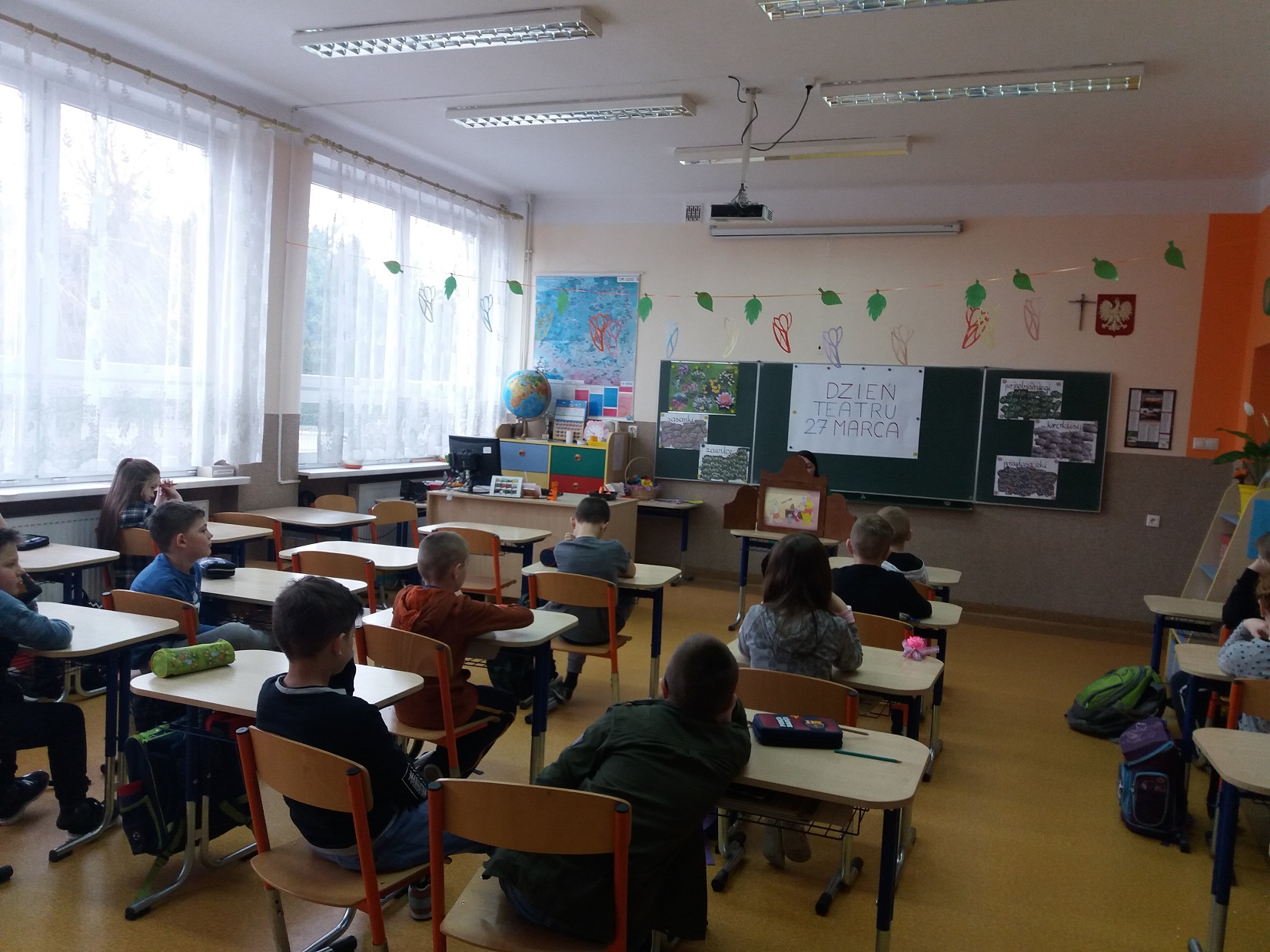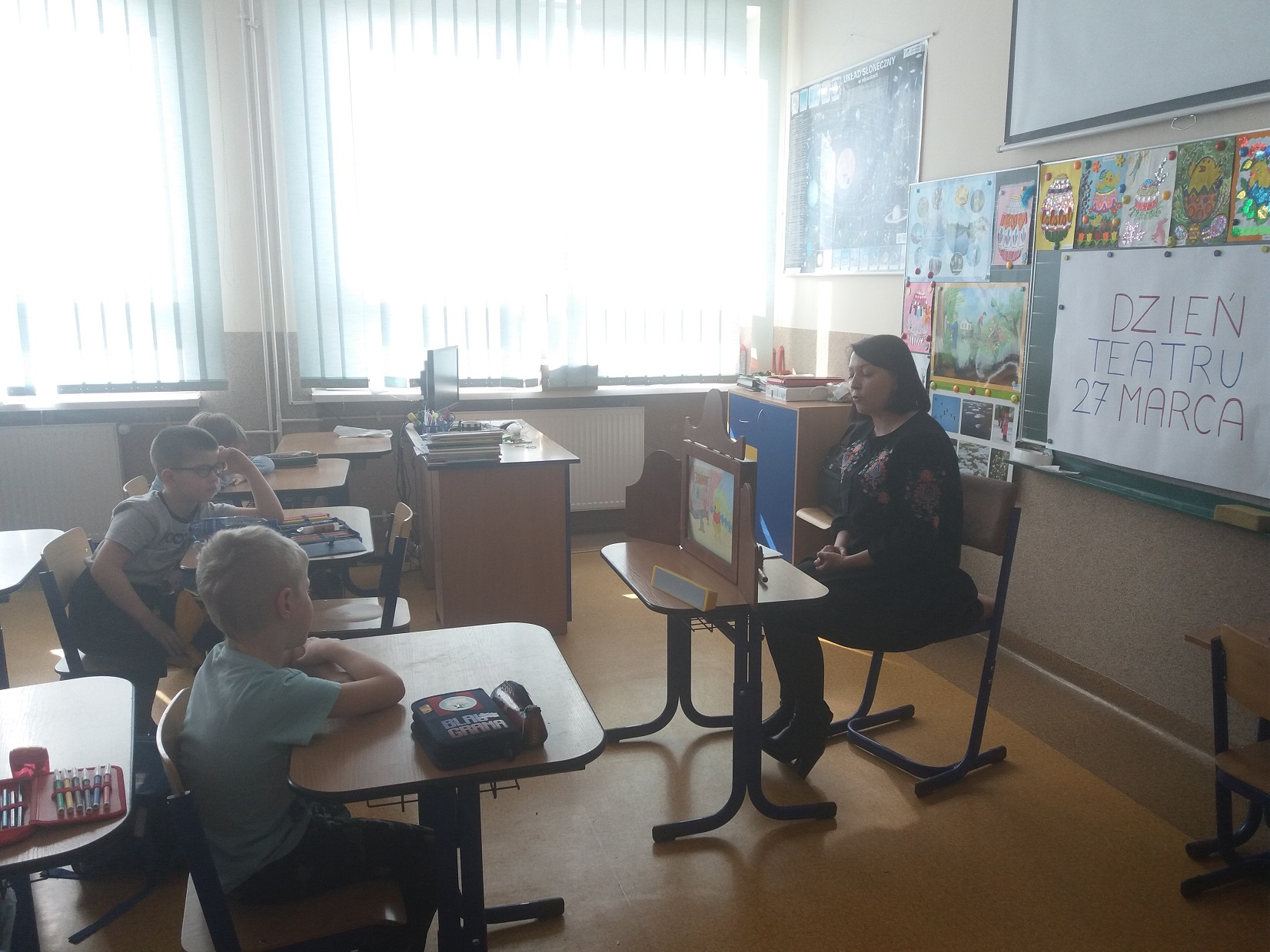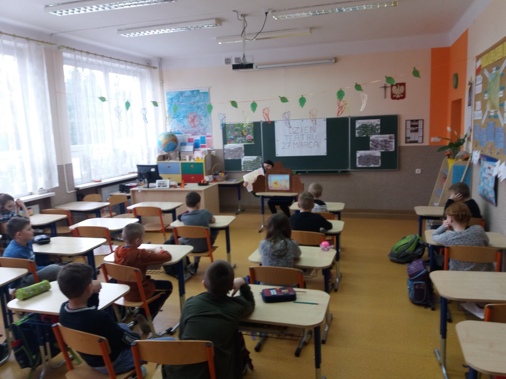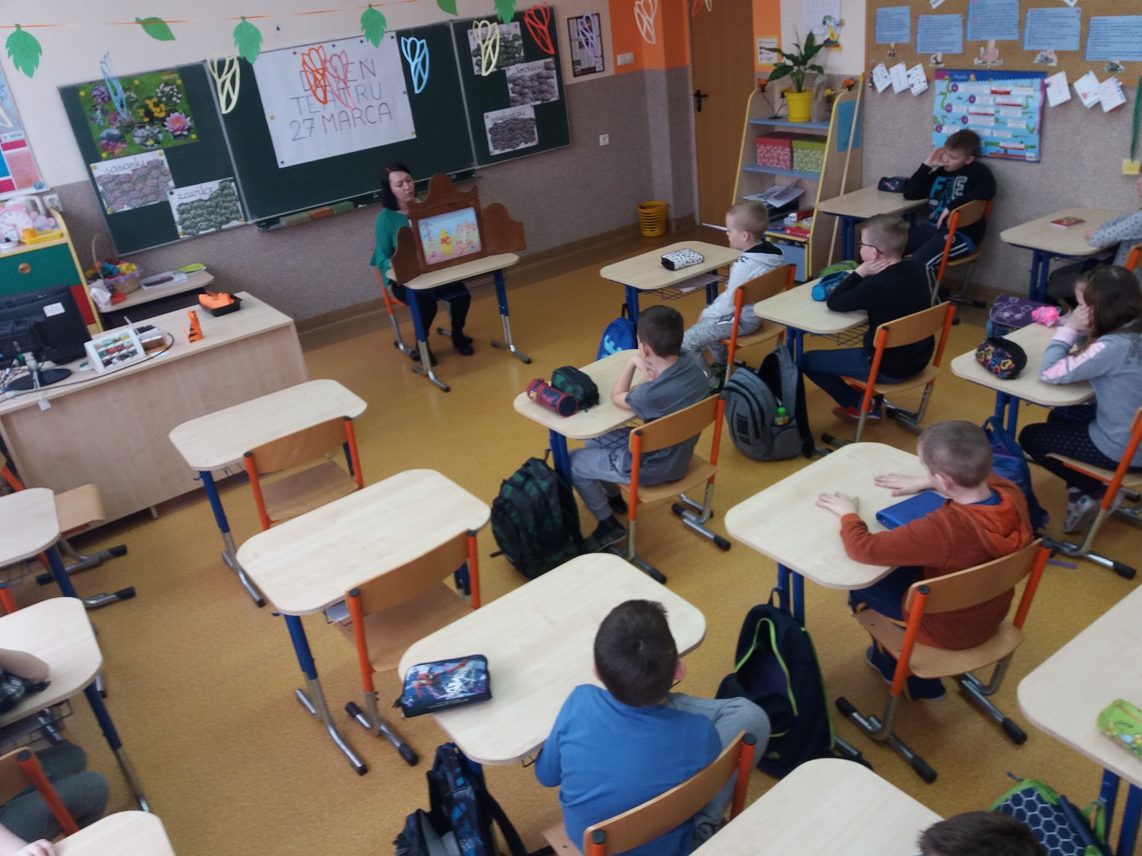 Z okazji przypadającego 27 marca Dnia Teatru nauczycielka biblioteki szkolnej pani Violetta Kusz zorganizowała dla swoich najmłodszych czytelników teatrzyk kamishibai pt. ”Kubuś Puchatek – Dzień Przyjaźni”.