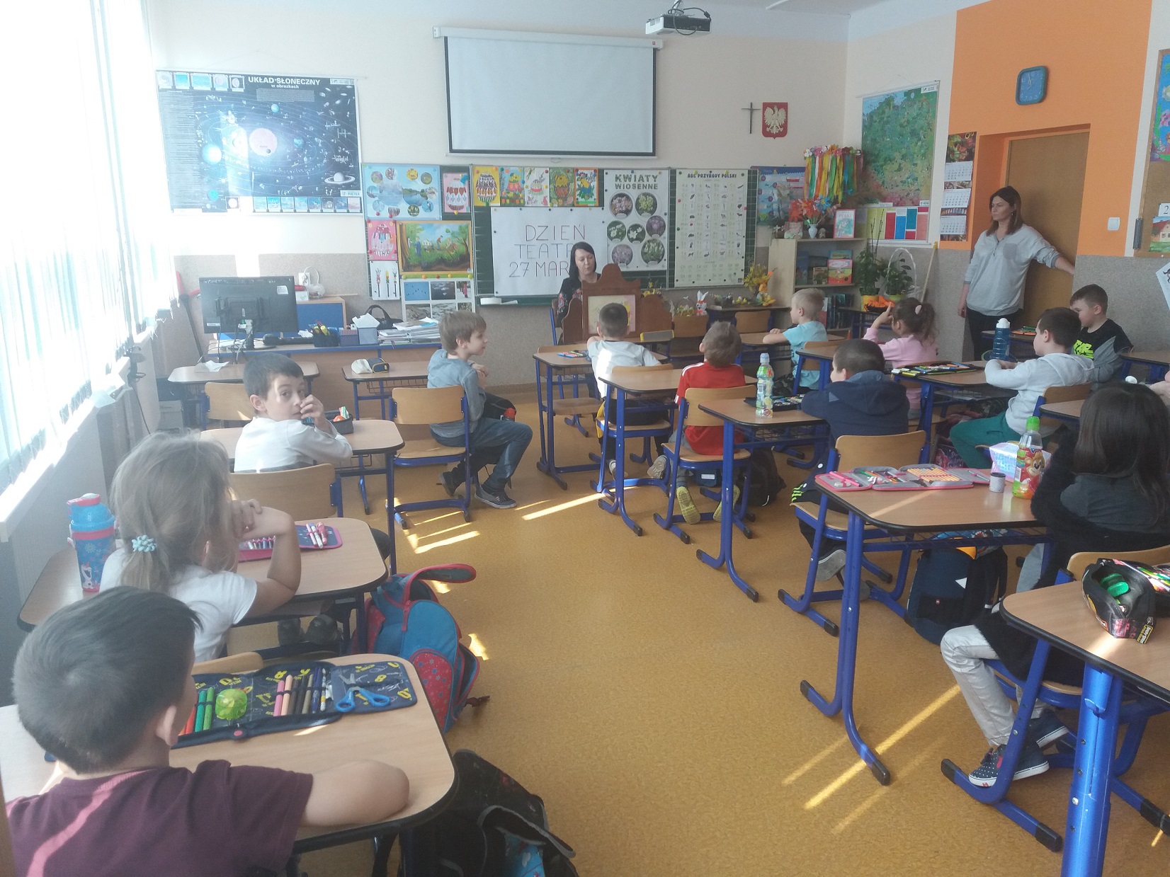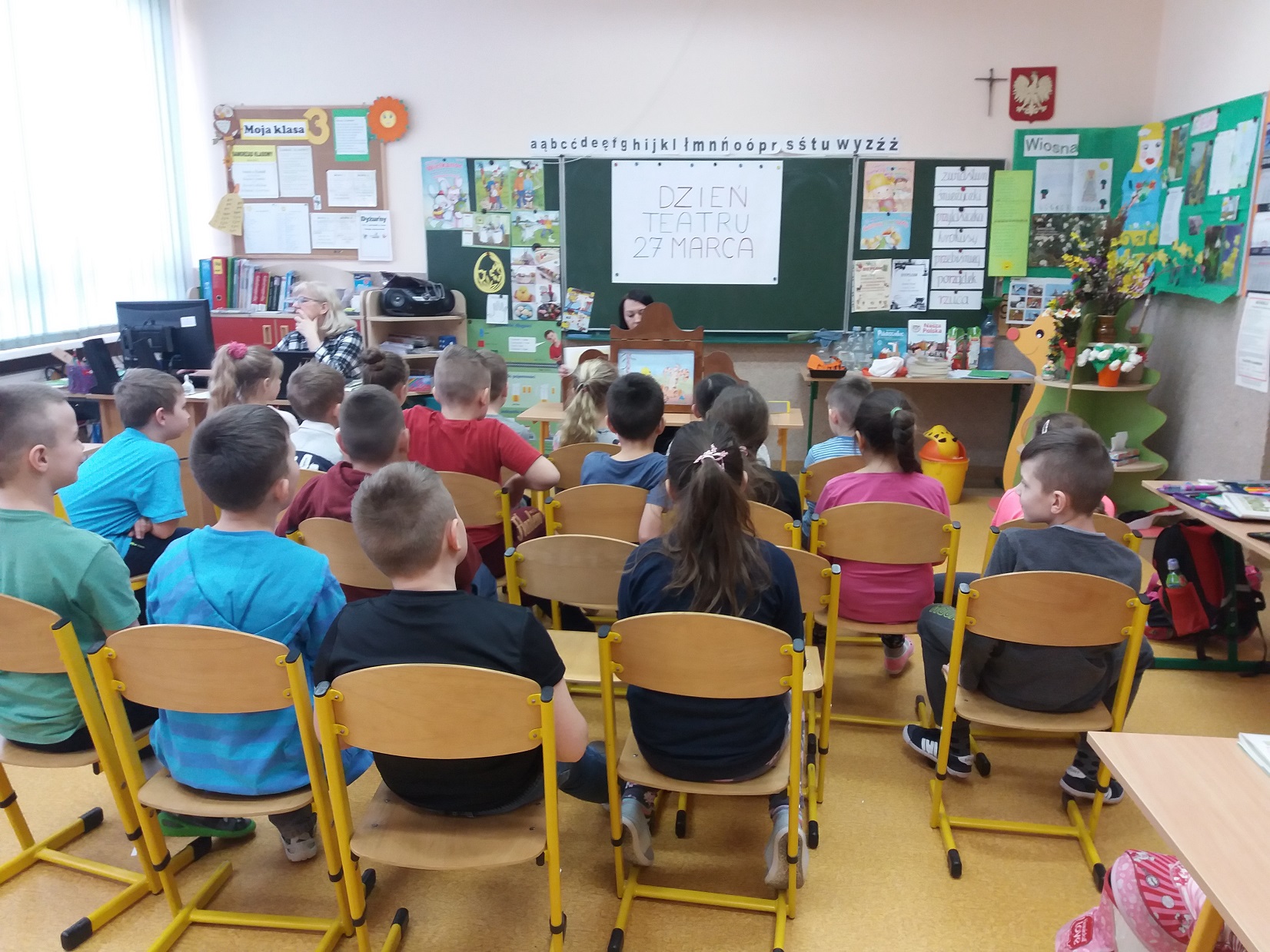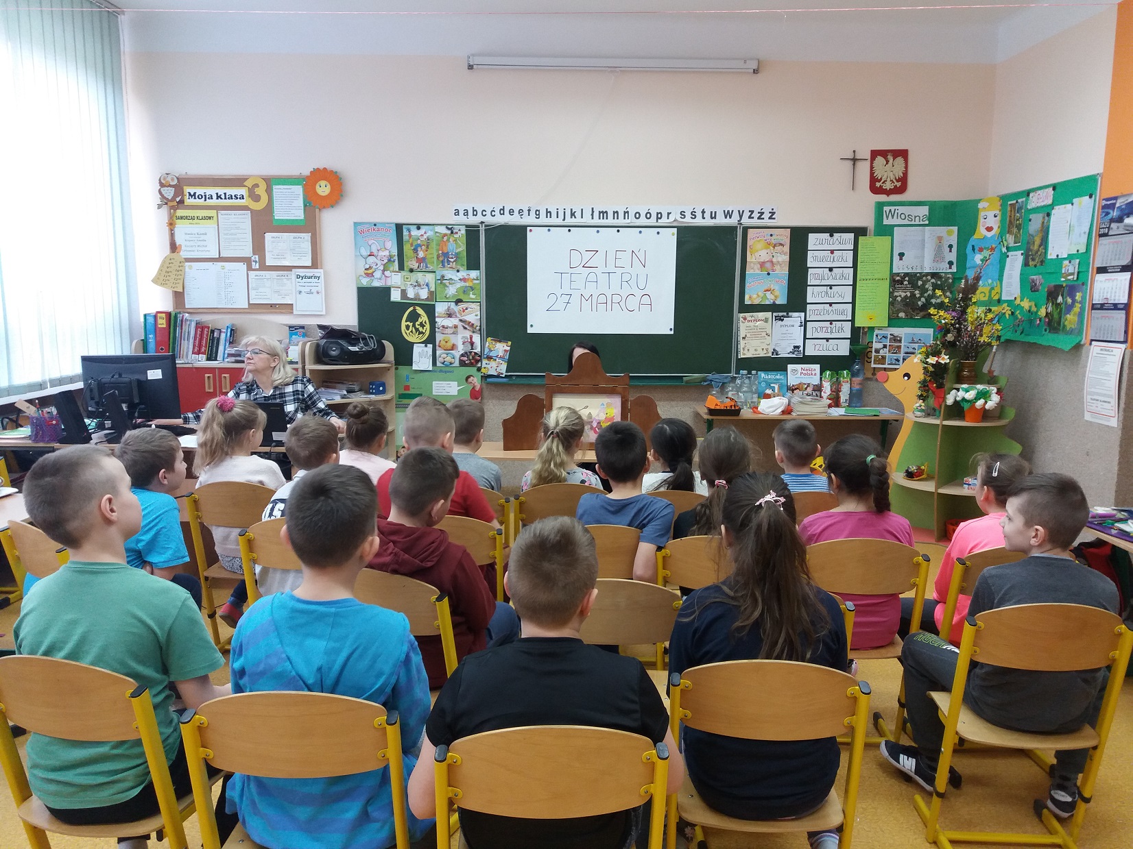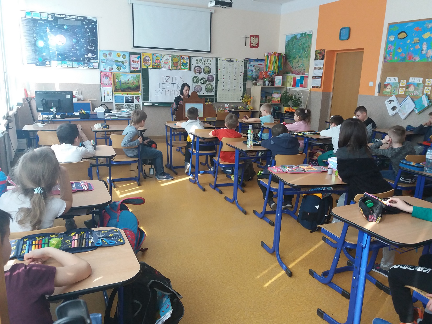 Z okazji przypadającego 27 marca Dnia Teatru nauczycielka biblioteki szkolnej pani Violetta Kusz zorganizowała dla swoich najmłodszych czytelników teatrzyk kamishibai pt. ”Kubuś Puchatek – Dzień Przyjaźni”.