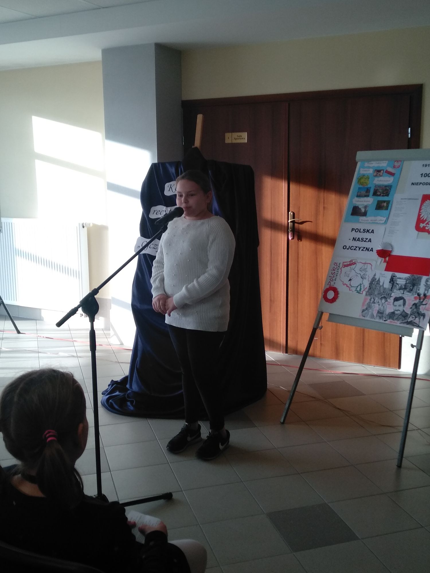 Dnia  13.11.2018 r.  uczniowie z klas IV-VIII wzięli udział w Szkolnym  Konkursie Recytatorskim Poezji Patriotycznej.