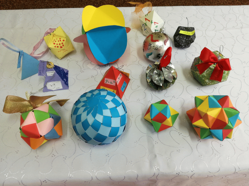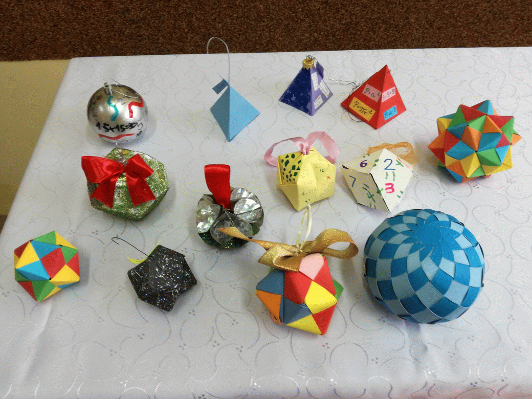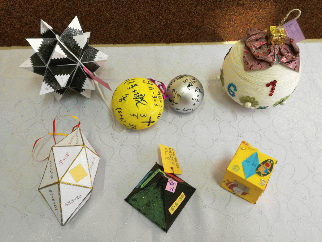 Konkurs polegał na wykonaniu ozdoby choinkowej - bombki. Ozdoby mogły być dowolnymi bryłami, mogły powstać poprzez złożenie lub sklejenie wcześniej przygotowanych elementów na bazie wielościanów, ale nie tylko. Można było również wykonać choinkę matematyczną. Praca powinna zawierać elementy nawiązujące do szeroko rozumianej matematyki. Uczniowie wykazali się dużą pomysłowością i pracowitością.