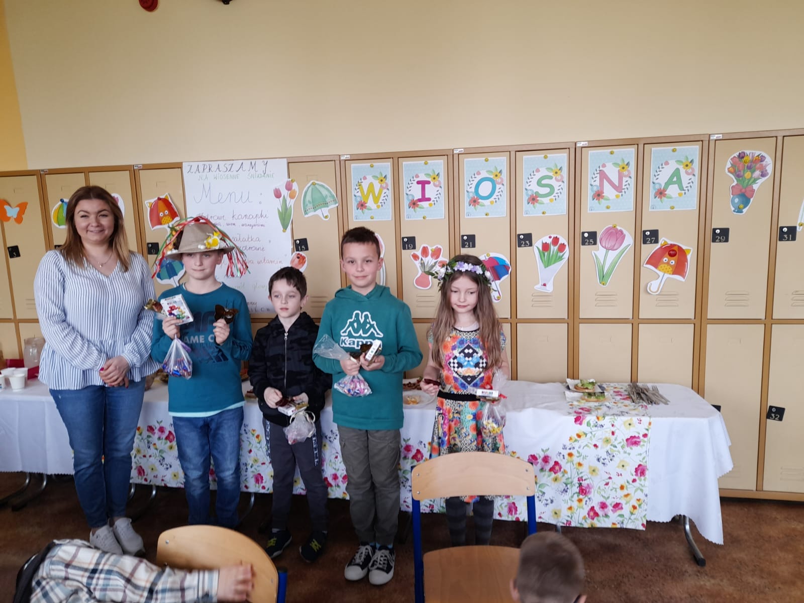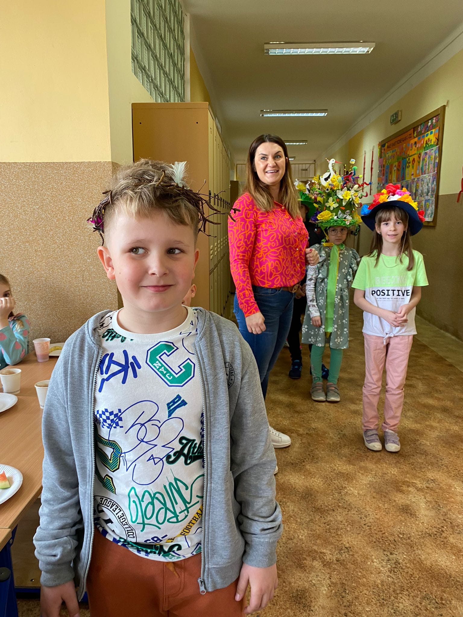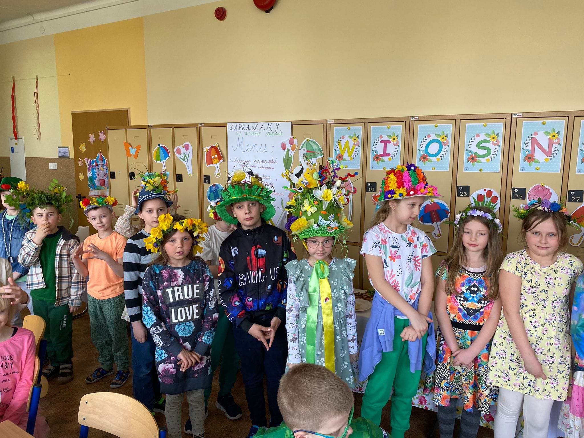 Pierwszy Dzień Wiosny w klasach 1-3 odbył się pod hasłem Zdrowo rosnę! W związku z tym uczniowie przygotowali zdrowe posiłki. W menu zdrowego wiosennego śniadania były zdrowe kanapki, świeżo wyciskany sok, koktajl owocowy, sałatka grecka oraz owocowy zawrót głowy. Po wspólnym śniadaniu odbył się konkurs na Najpiękniejsze wiosenne nakrycie głowy. W tym dniu nie brakowało również zagadek o tematyce wiosennej i zdrowego trybu życia. Zakończeniem tego dnia był wiosenny pochód z gaikami, kolorowymi kwiatami oraz motylami. Odwiedziliśmy Urząd Gimny oraz GZEAS. Bardzo dziękujemy Pani Wójt Barbarze Dybczak i Pani Danucie Trzaskawskiej za bardzo miłe powitanie i poczęstunek. Podziękowania również dla drużyny harcerskiej za ufundowanie nagród związanych z konkursem wiosennym.