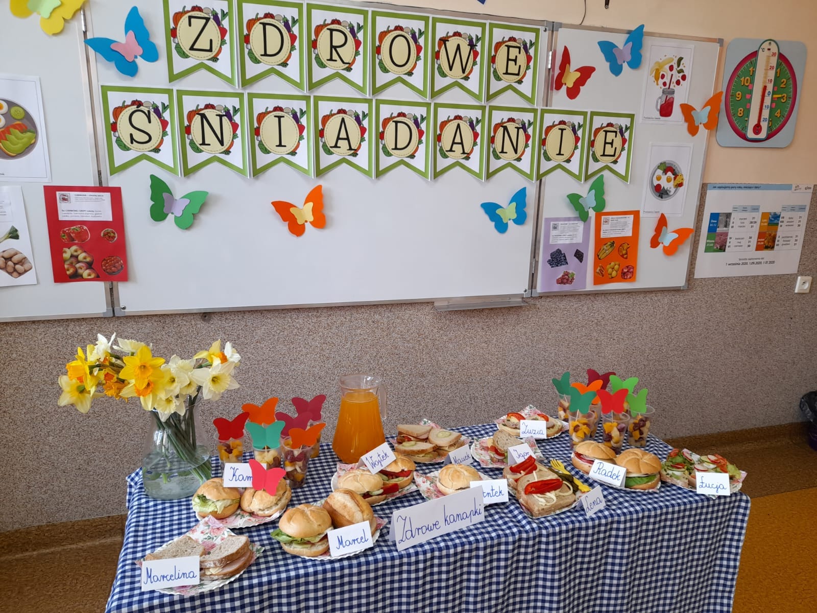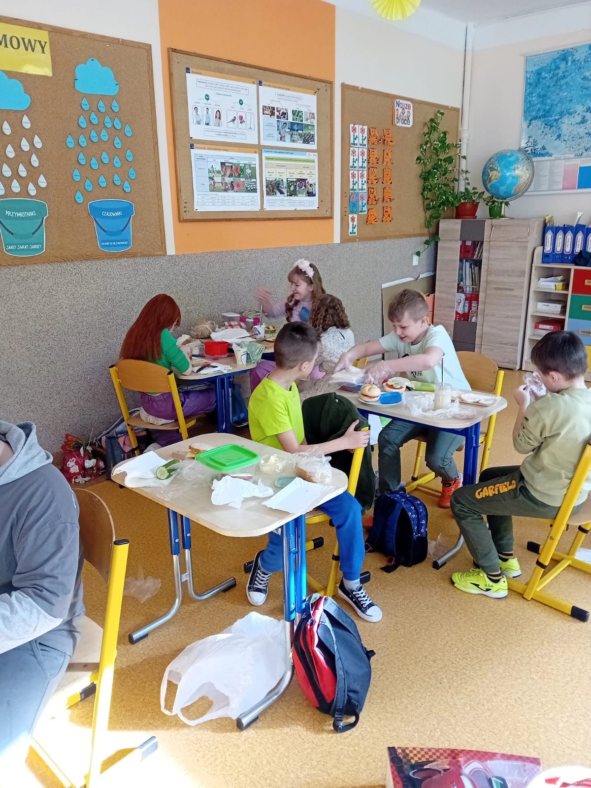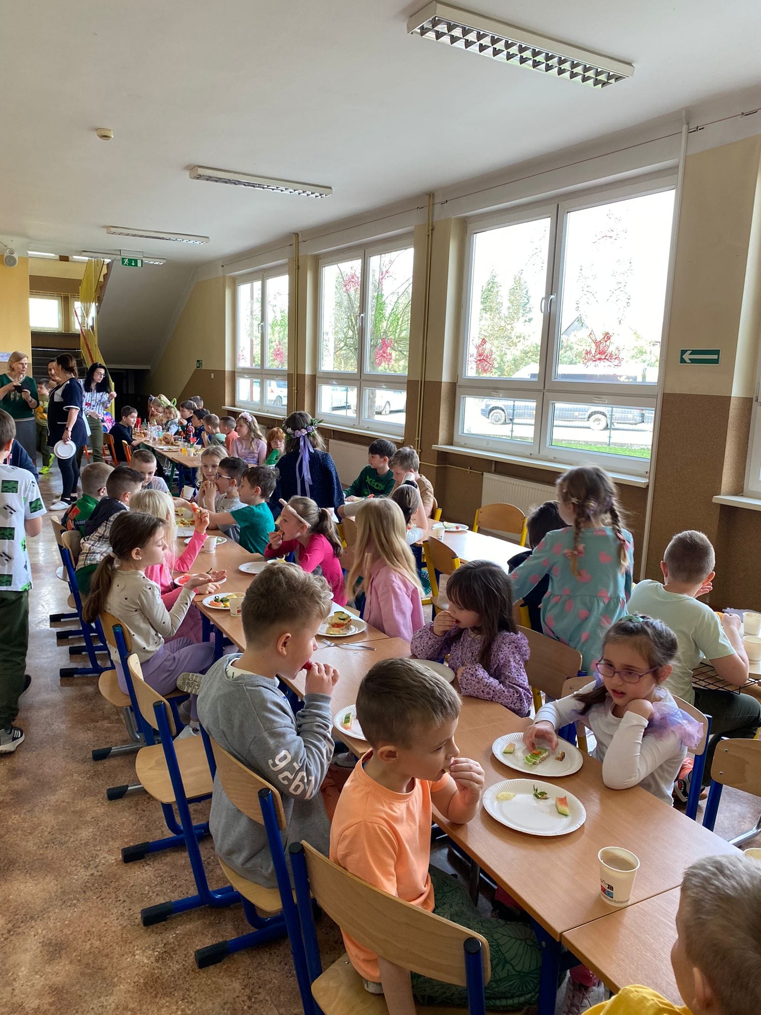 Pierwszy Dzień Wiosny w klasach 1-3 odbył się pod hasłem Zdrowo rosnę! W związku z tym uczniowie przygotowali zdrowe posiłki. W menu zdrowego wiosennego śniadania były zdrowe kanapki, świeżo wyciskany sok, koktajl owocowy, sałatka grecka oraz owocowy zawrót głowy. Po wspólnym śniadaniu odbył się konkurs na Najpiękniejsze wiosenne nakrycie głowy. W tym dniu nie brakowało również zagadek o tematyce wiosennej i zdrowego trybu życia. Zakończeniem tego dnia był wiosenny pochód z gaikami, kolorowymi kwiatami oraz motylami. Odwiedziliśmy Urząd Gimny oraz GZEAS. Bardzo dziękujemy Pani Wójt Barbarze Dybczak i Pani Danucie Trzaskawskiej za bardzo miłe powitanie i poczęstunek. Podziękowania również dla drużyny harcerskiej za ufundowanie nagród związanych z konkursem wiosennym.