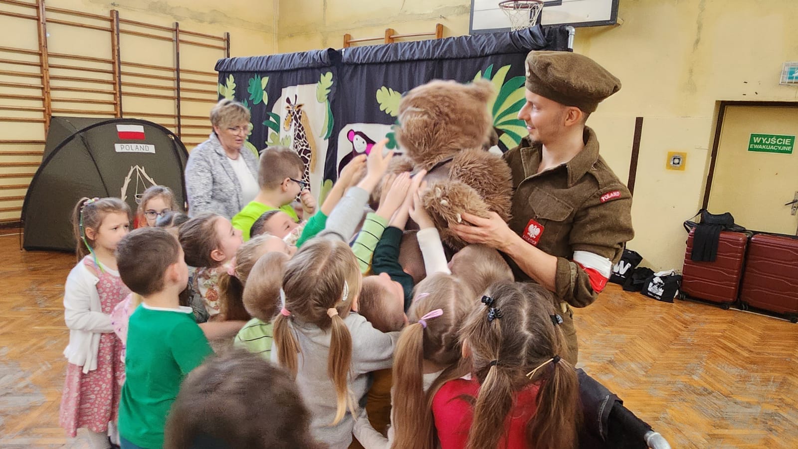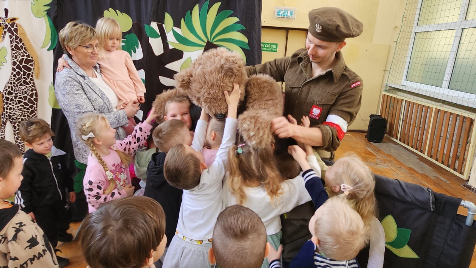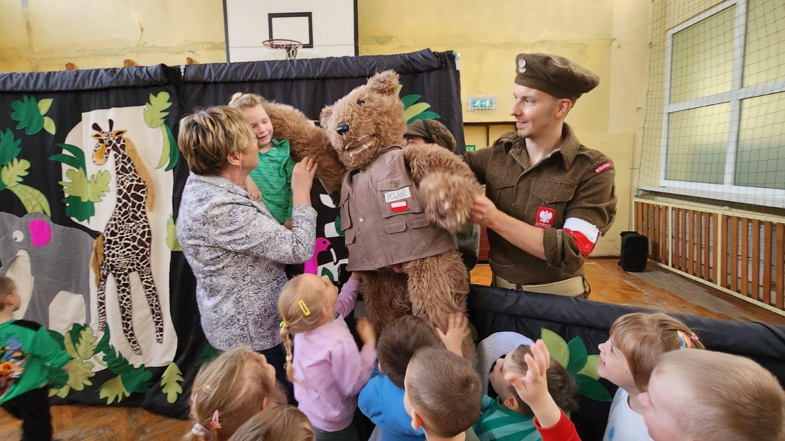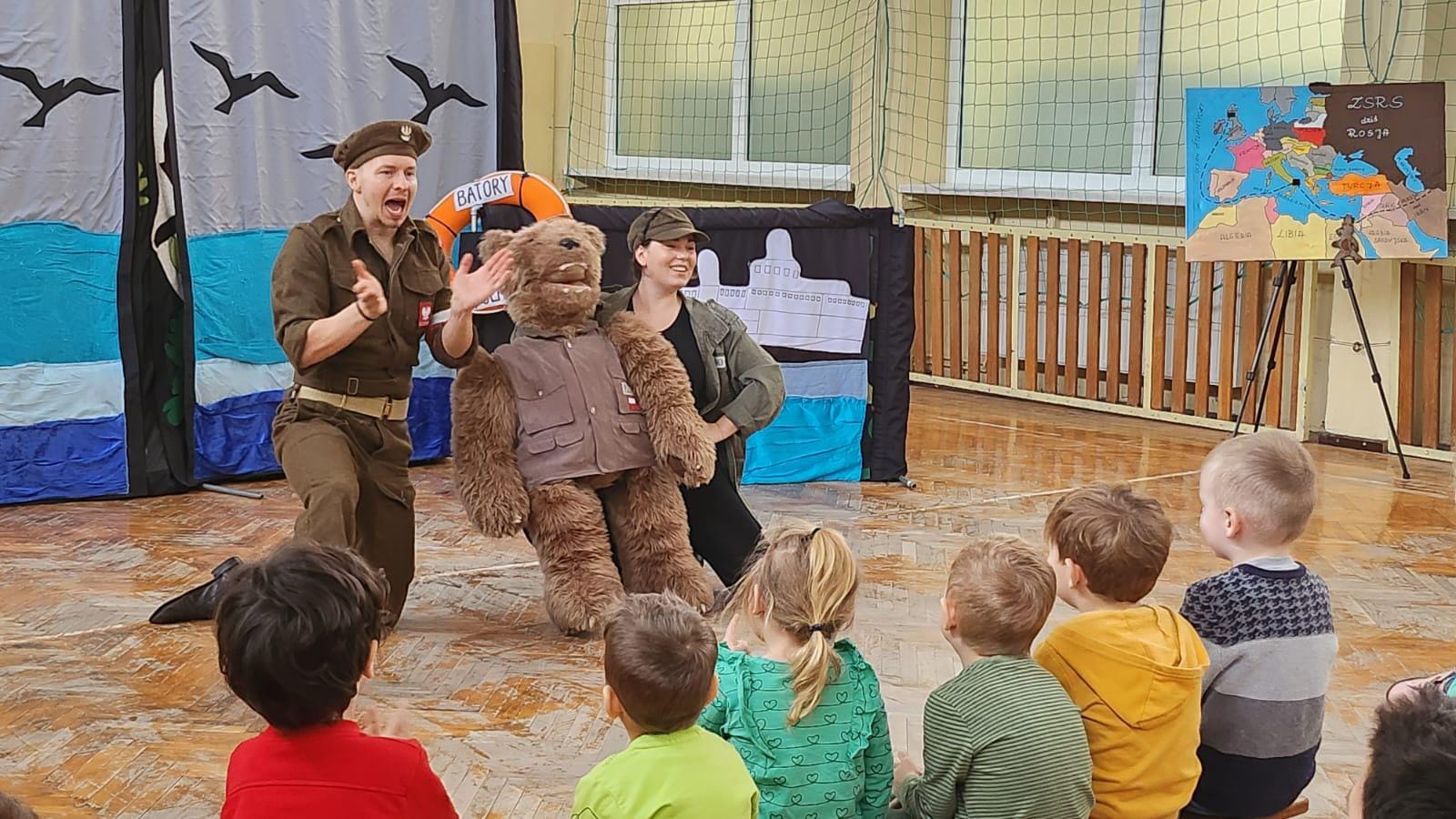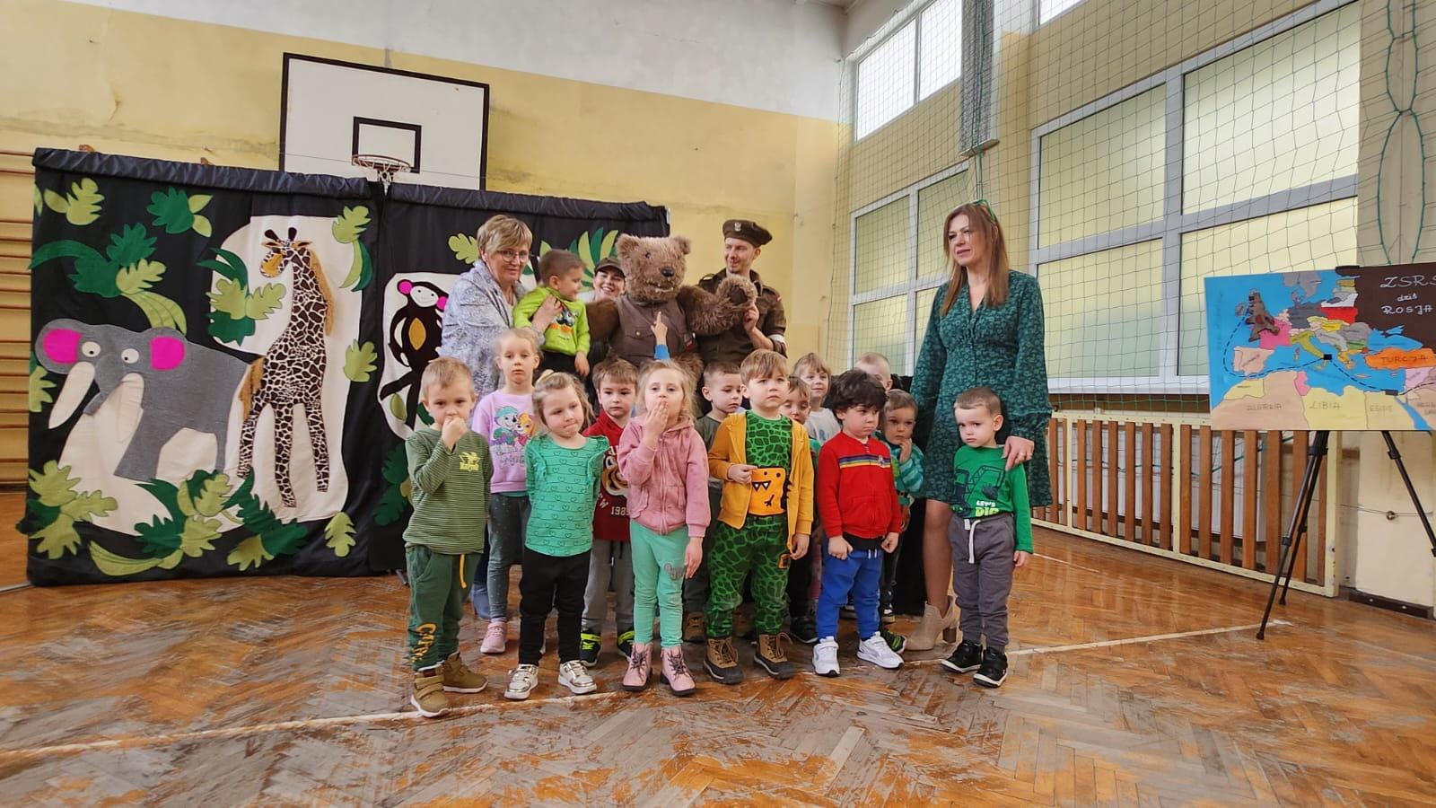 Dnia 21 marca przedszkolaki miały możliwość obejrzenia przedstawienia pt. "Historia Misia Wojtka". Aktorzy w przystępny sposób opowiadali o szlaku armii generała Andersa, z którą wędrował oswojony niedźwiedź Wojtek. Dzieci braly czynny udział w przedstawieniu poprzez śpiew i pytania, które zadawali aktorzy. Przedszkolaki wchodząc w interakcję z aktorami lepiej zapamiętały przekazywaną wiedzę.