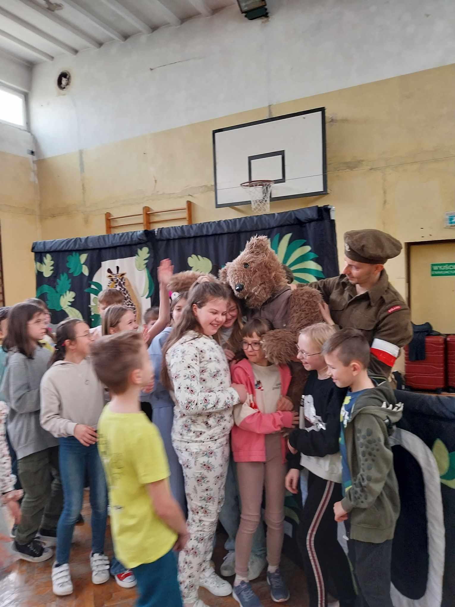 Dzięki wieloletniej i owocnej współpracy naszej placówki z Instytutem Pamięci Narodowej oraz Stowarzyszeniem Miłośników Historii i Wojskowości im. rtm. Witolda Pileckiego "Kryptonim T-IV' udało się zorganizować spektakl "Historia Misia Wojtka. Odbiorcami przedstawienia , które miało na celu przybliżenie postaci dzielnego niedźwiedzia byli uczniowie klas I-V oraz przedszkolaki. Spotkanie z "Misiem Wojtkiem" uświetniło obchody Pierwszego Dnia Wiosny w naszej placówce.