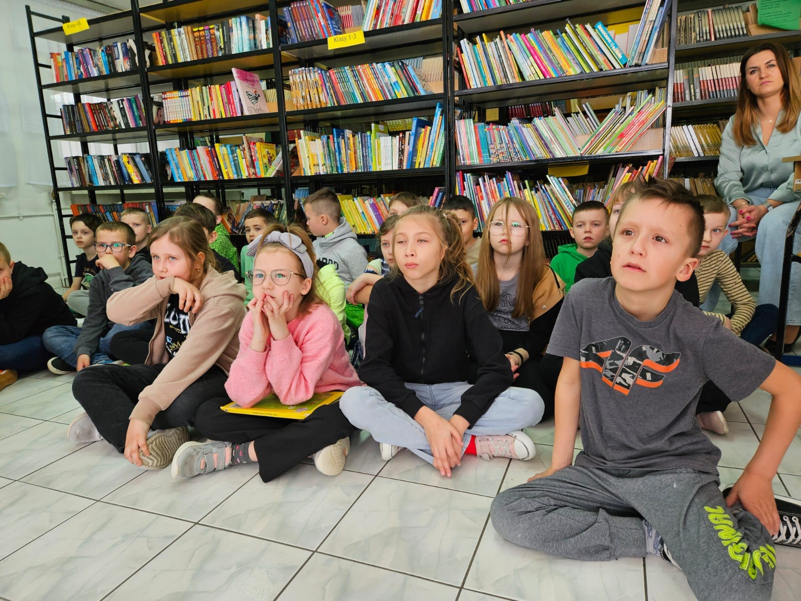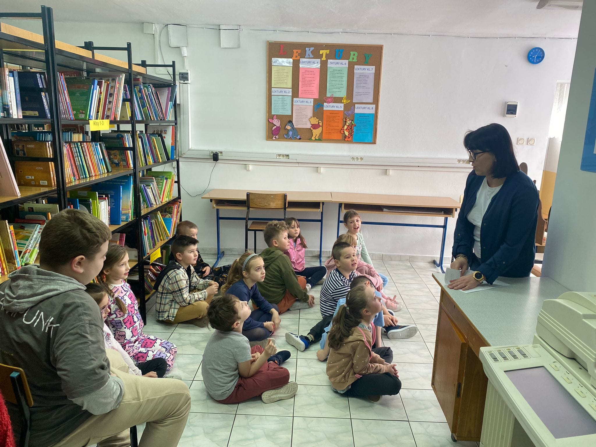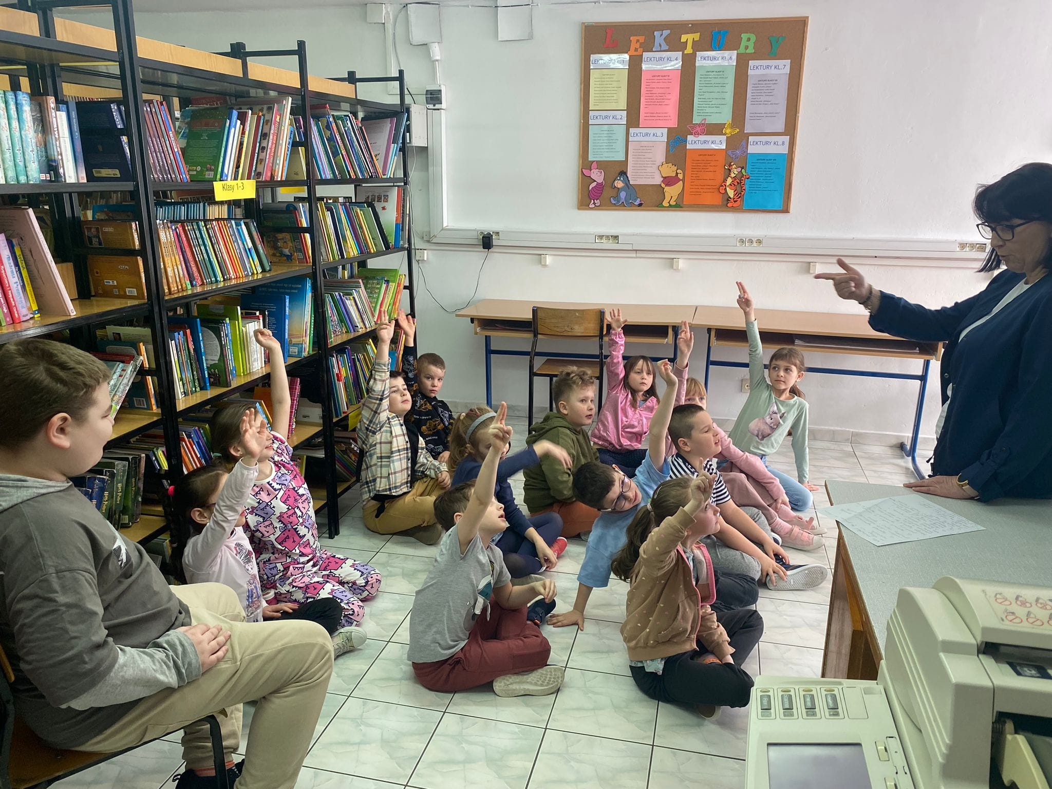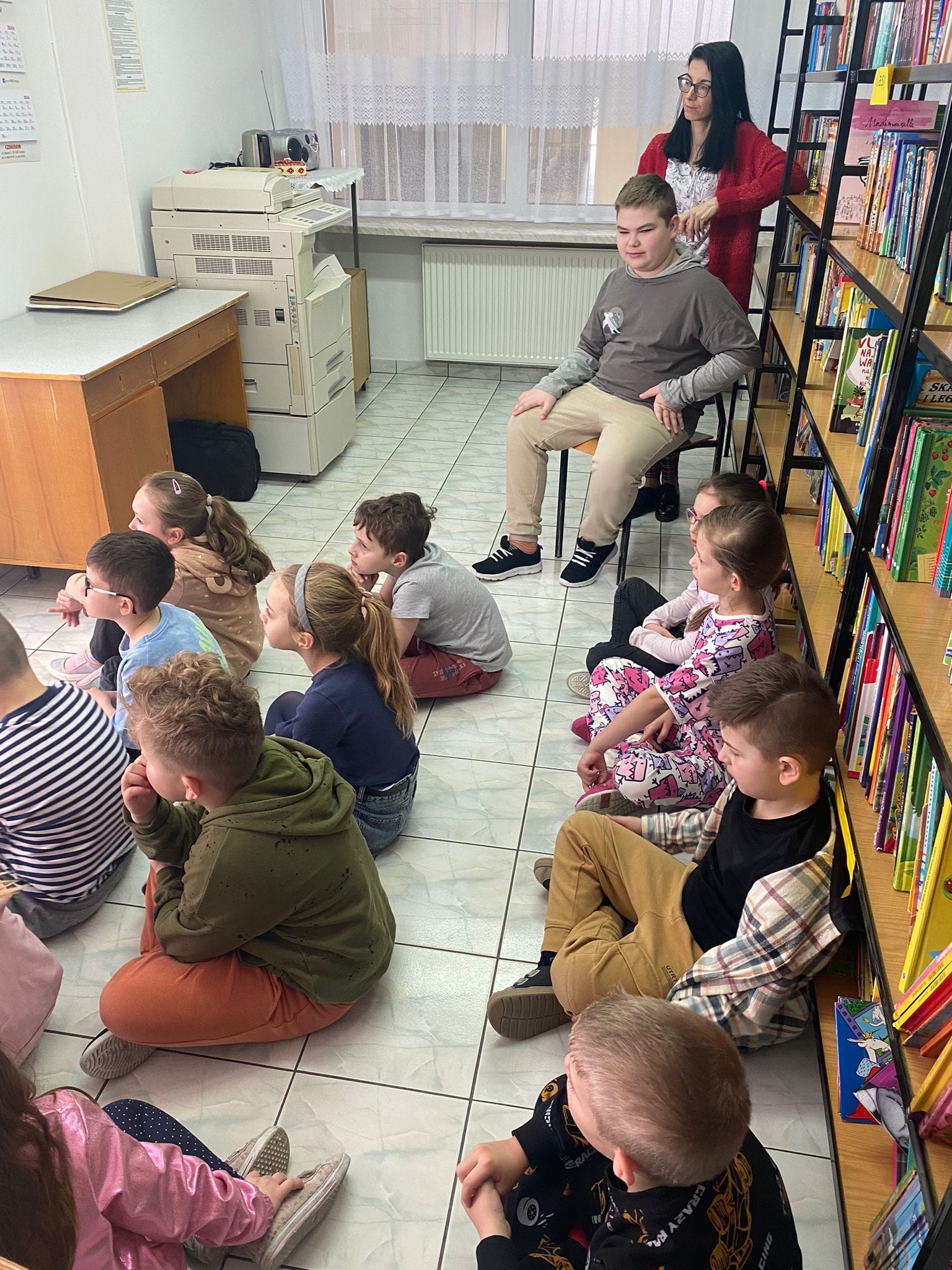 27 marca - Międzynarodowy Dzień Teatru. Z tej okazji uczniowie klas 1, 2a i 2b odwiedzili bibliotekę szkolna. Wysłuchali bajki w formie Teatrzyku Kamishibai "O zajączku, który nie chciał się dzielić".