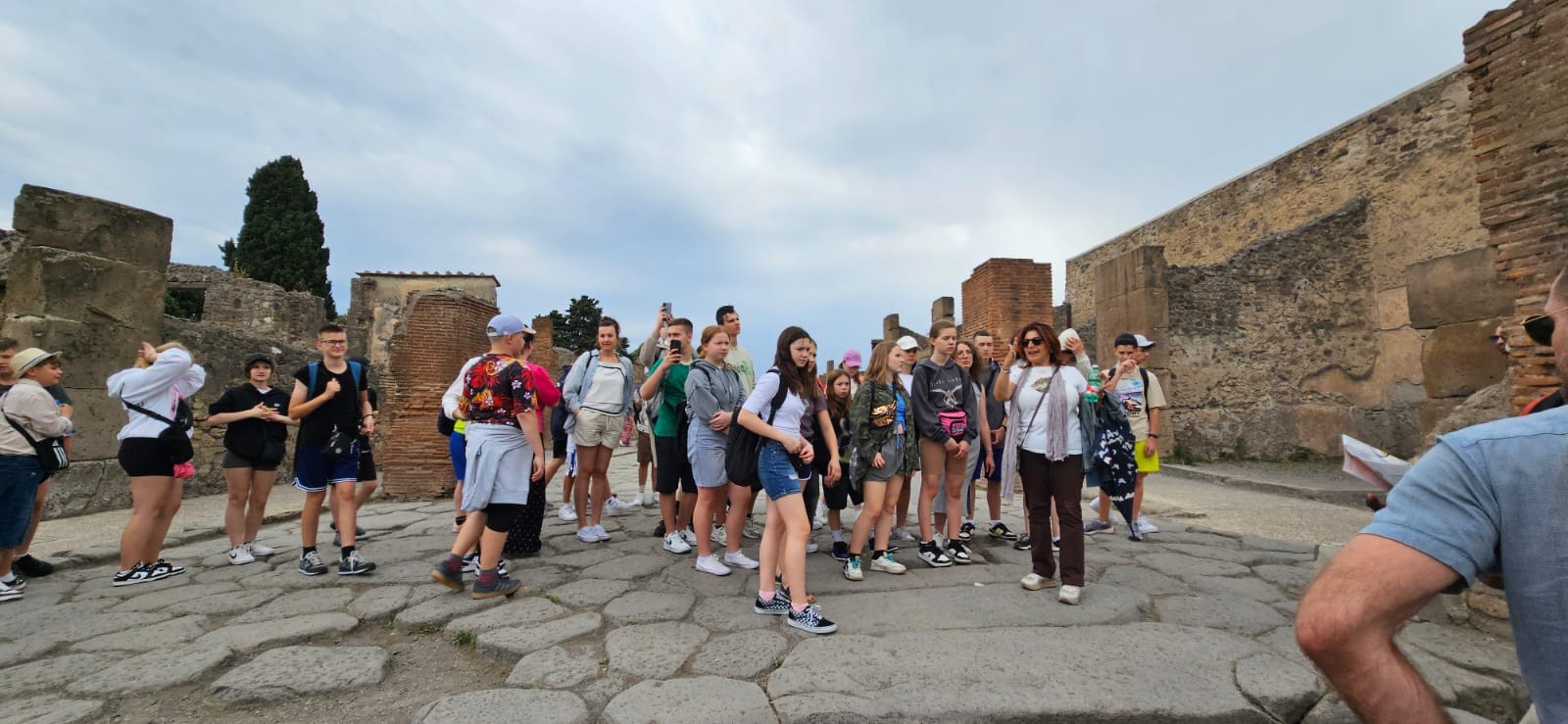 Drugi dzień pobytu we Włoszech za nami. Rano grupa dzieci odwiedziła lokalny kościół. Po południu uczniowie udali się do Pompei, gdzie zwiedzali ruiny tego starożytnego miasta pod okiem przewodniczki.